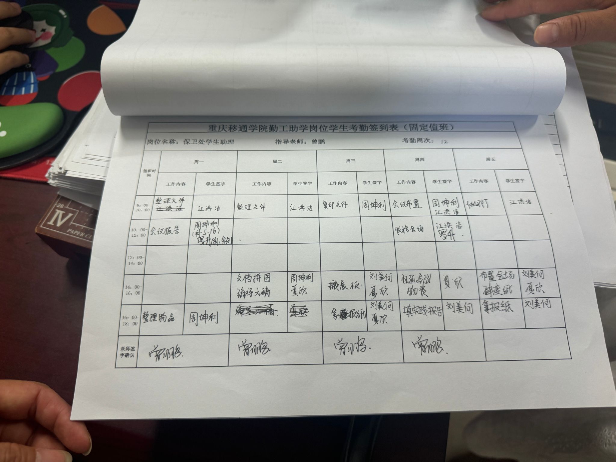 检查中发现,保卫处岗位管理规范,值班表张贴到位,考勤表记录完善,在岗学生精神饱满、态度认真,能够较好地履行岗位职责,展现了自立自强、积极向上的良好风貌。少数岗位存在值班表未及时更新、考勤表未按要求记录等现象。针对发现的问题,检查小组现场与用人单位指导老师进行了沟通反馈,提出了明确的整改意见和要求,强调要进一步优化管理流程,加强对学生的在岗管理与指导。
