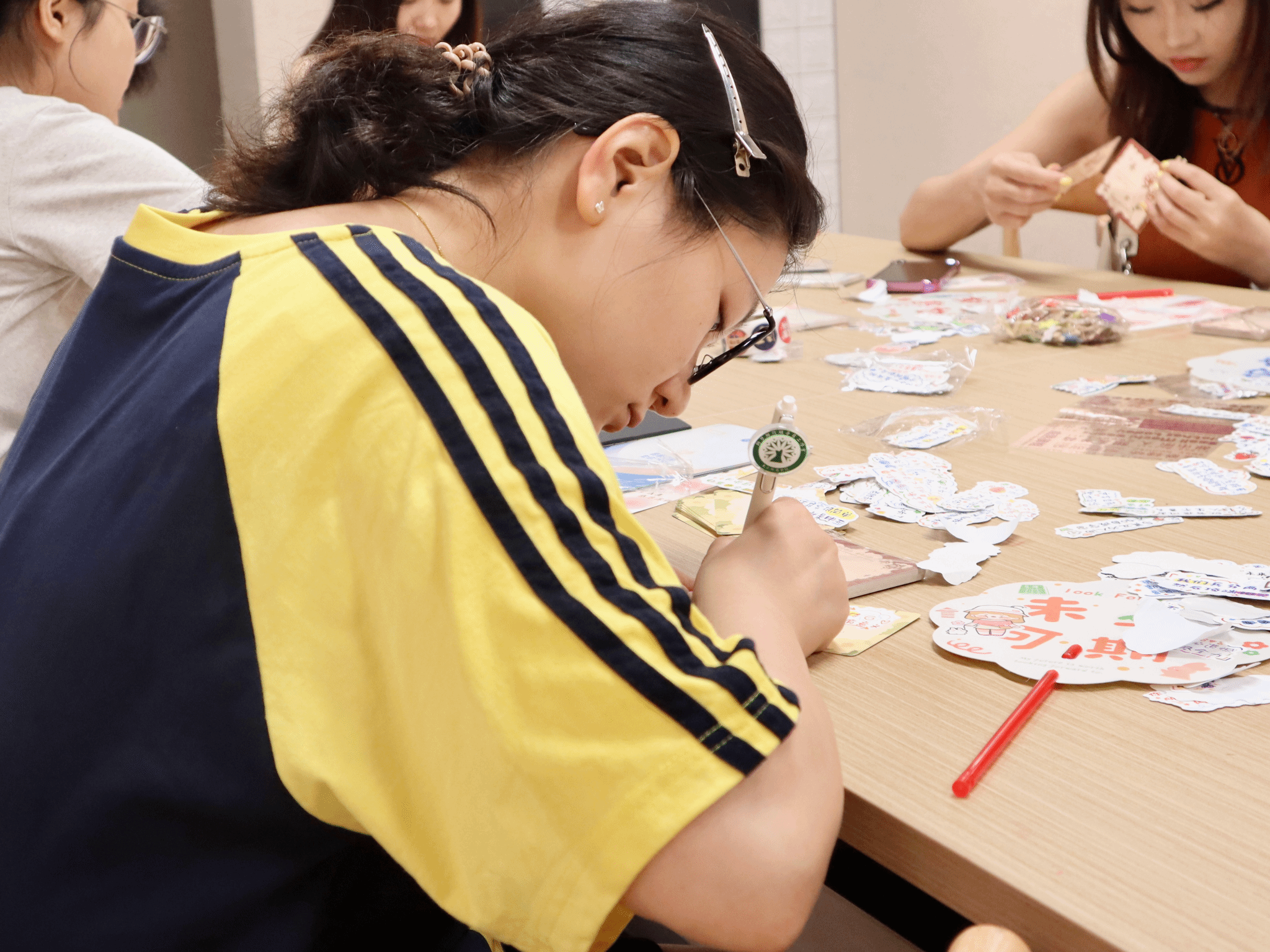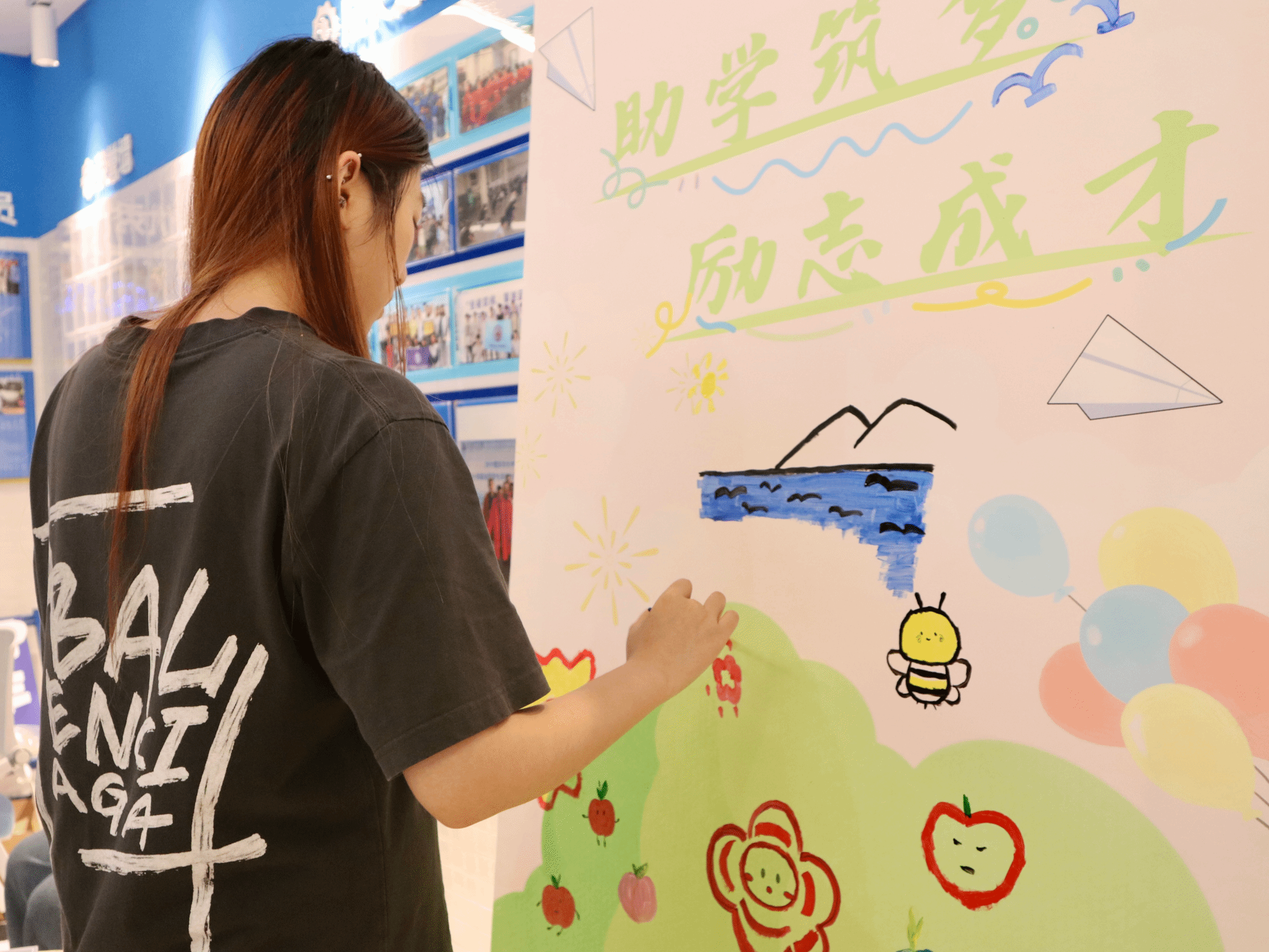 "本来以为是枯燥的宣讲,没想到像逛集市一样学到好多!"外国语学院大二学生李同学晃了晃手中盖满六个摊位印章的打卡券,她刚在政策宣传站领到的《资助指南手册》里,夹着自己在涂鸦墙创作的纪念卡片。淬炼商学院学工办廖进老师作为活动嘉宾,全程参与了拼图和手账制作,她说"这种把流程拆解成游戏关卡的设计特别 clever,学生在动手过程中自然记住了关键信息。"