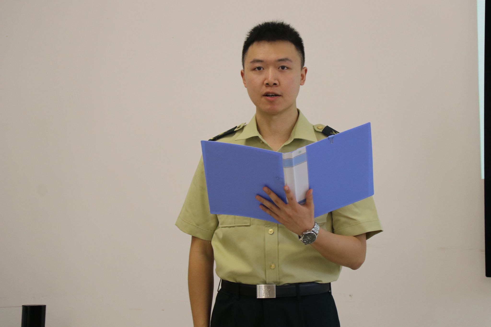 活动由院国防宣讲团成员文迪主持,在齐唱的国歌声中拉开帷幕。智能工程学院国防教育宣讲团以铿锵步伐完成出旗仪式。随后杨铭老师作出工作总结并指出:“宣讲团自成立以来,始终以党建为引领,成员们既是政策宣讲的‘排头兵’,更是党团精神的‘传播者’,累计开展国防教育进年级、进班级活动10余场,覆盖全院师生。”