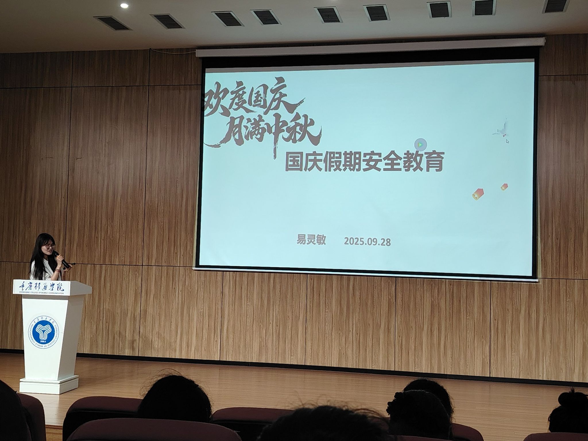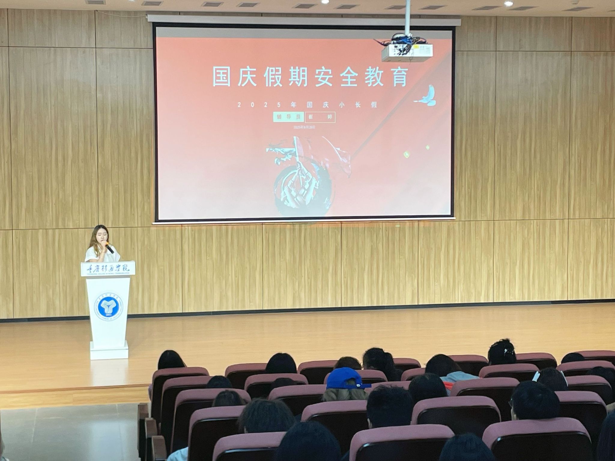 国庆假期前,学院聚焦出行、居家、网络等假期安全风险,召开专项教育会12场,重点强调“三不要求”;建立“学生-家长-辅导员”三方联动机制,确保学生动态可控;同时开展校园及周边安全隐患排查,引导学生文明理性过节。