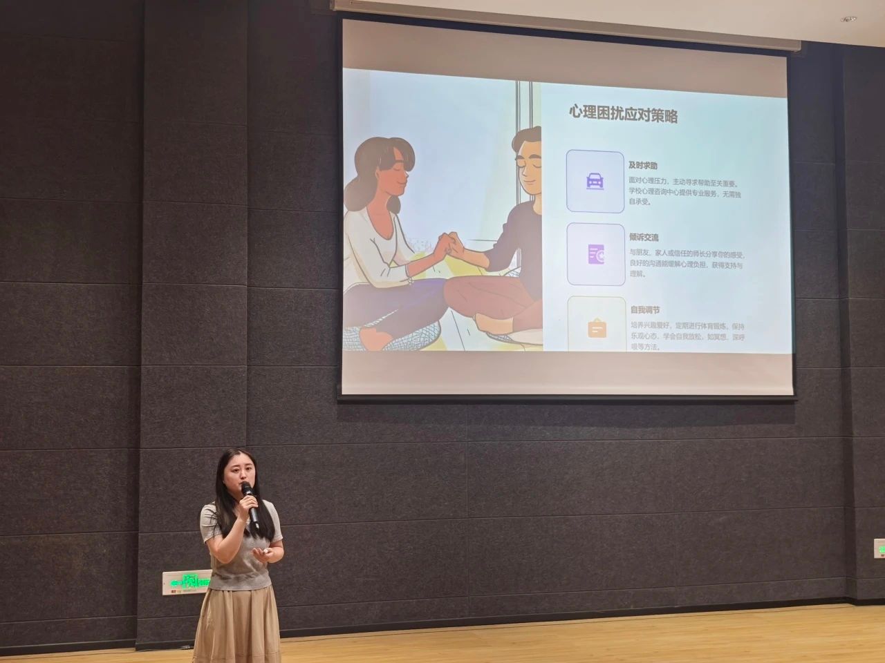 多个学院通过开展主题讲座,系统普及心理健康知识,引导学生正确看待心理困扰与求助行为。远景学院举办“心”生启航专题讲座,由心理教师廖春花主讲,辅导员共同参与,重点讲解心理求助途径,减轻学生对咨询的误解。德国工程学院开展“新生入学心理健康第一课”,由秦雪菲老师与心理站学生干部联合主讲,强调“心理健康≠心理疾病”,帮助学生树立科学认知。外国语学院以“开学第一课”形式,融入心理健康主题,通过系统性讲解与互动引导,营造关注心理健康的校园氛围。
