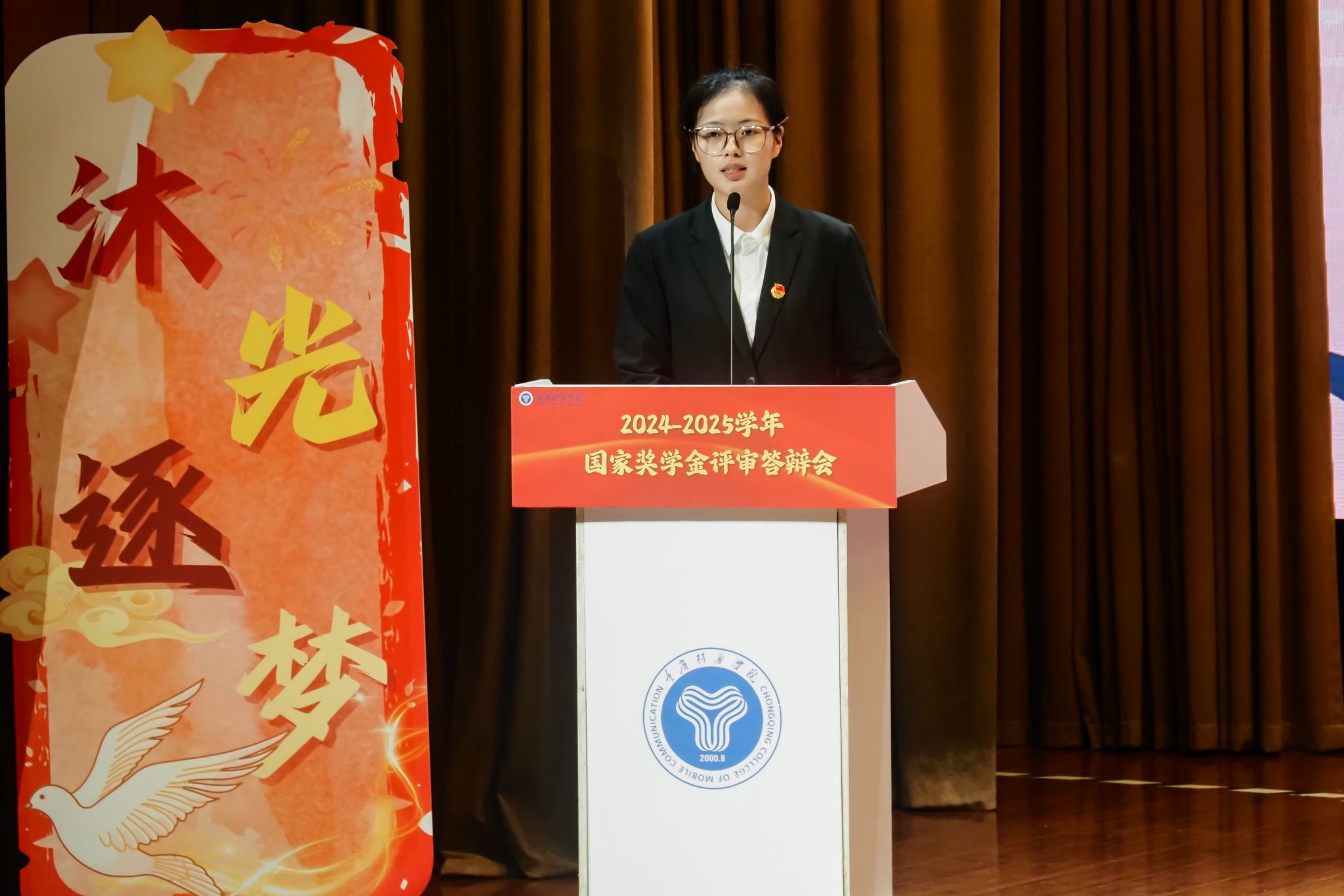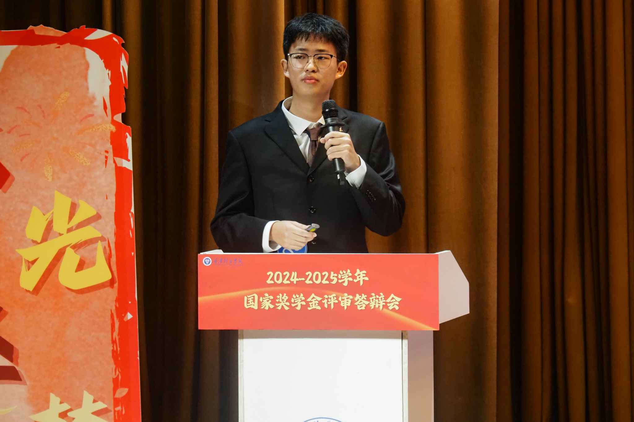 “千淘万漉虽辛苦,吹尽狂沙始到金。”评审答辩会现场,主持人介绍评委、宣读规则后,来自各学院的25名候选学子依次登台,围绕学习成绩、创新能力、社会实践、综合素质等方面展开精彩陈述与答辩,为现场师生呈现了一场兼具深度与温度的青春盛宴。最终,23名学子脱颖而出,斩获2024-2025学年国家奖学金。他们坚信,每一份努力都不会被辜负,未来也将带着这份信念继续奋进。