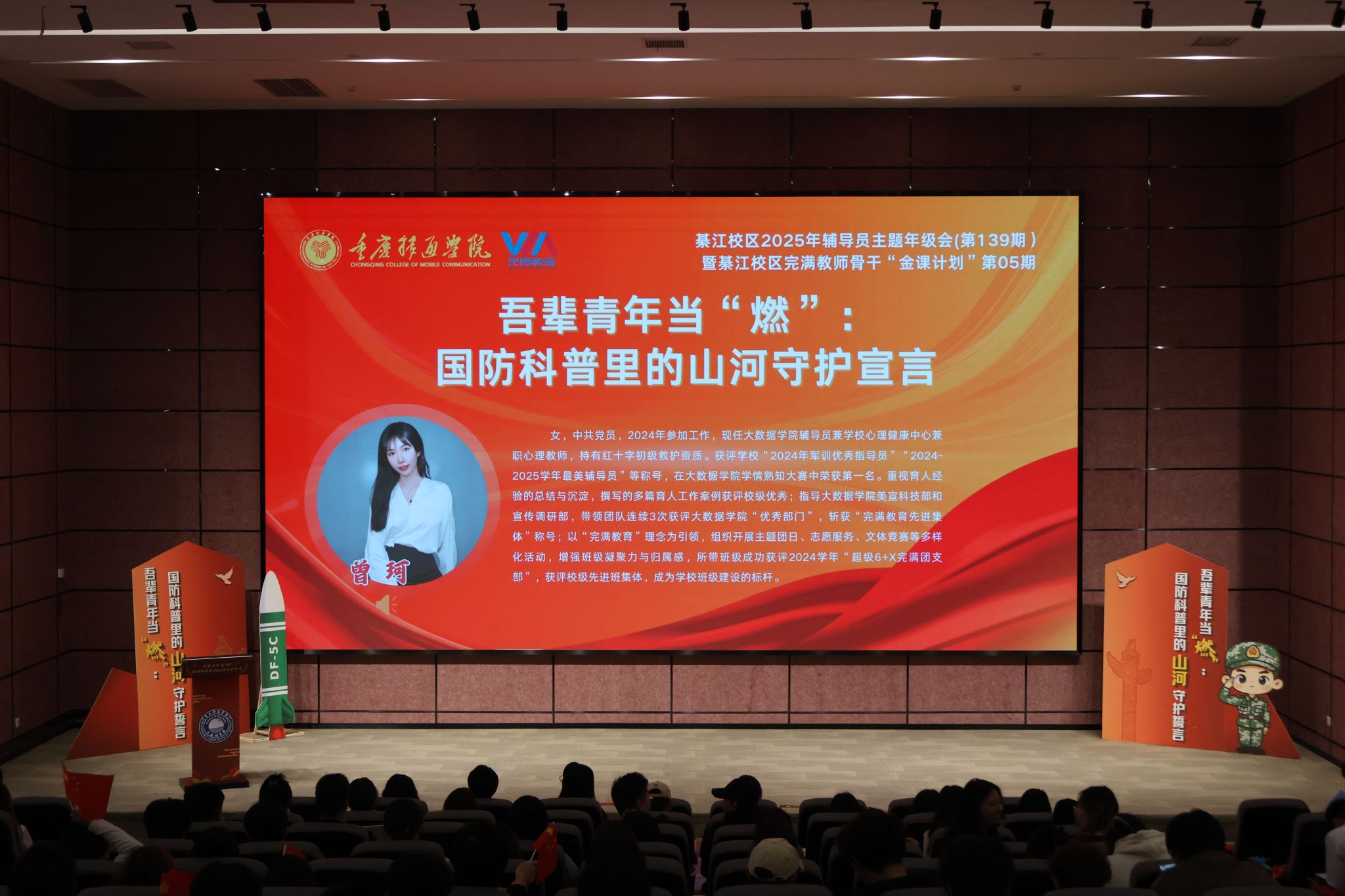 10月22日,大数据学院辅导员曾珂以“吾辈青年当‘燃’:国防科普里的山河守护誓言”为主题在贤者楼423多功能报告厅开启綦江校区完满教师骨干“金课计划”05期。校团委书记蔡星宇、大数据学院党总支副书记阙小梅,学生科副科长何成露、各学院辅导员代表到场观摩,一场兼具情感温度与知识厚度的国防教育“金课”年级会就此拉开帷幕。