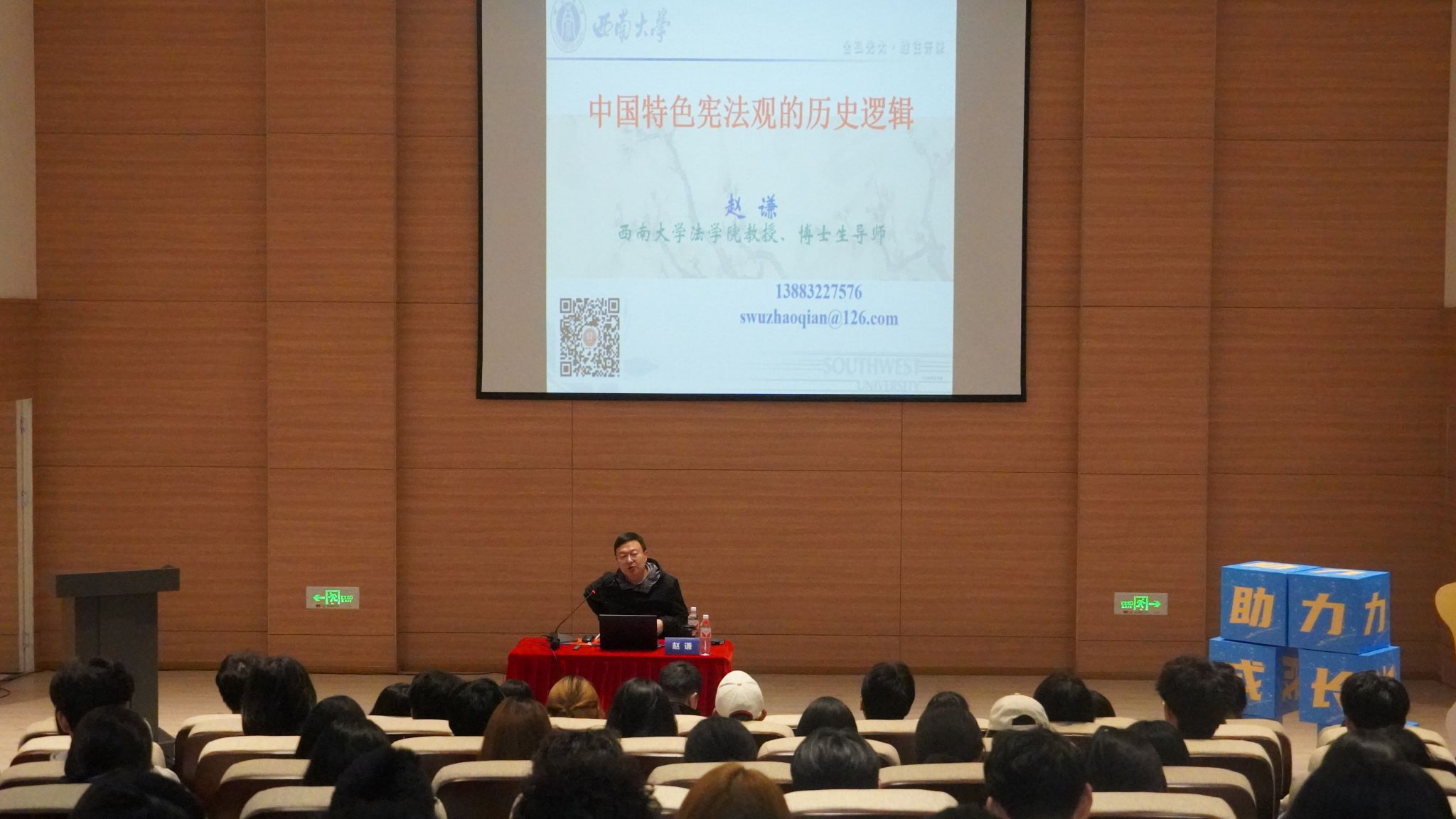 为深入学习贯彻习近平法治思想,切实提高学生骨干的法治素养与履职能力,学生处于10月28日在创梦空间开展2025-2026学年第一学期助力成长计划之“班长培训班”第二期暨法治大讲堂第十七期。本次活动特别邀请到西南大学赵谦教授担任主讲嘉宾,内容围绕《中国特色宪法观的历史逻辑》开展,由学生处处长陈帅主持。