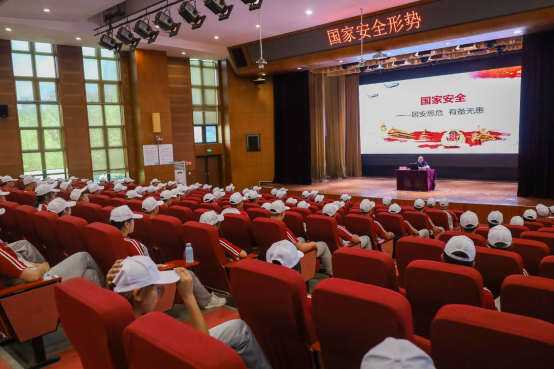 为切实提高我校大学生的国防安全意识,激发爱国热情,掌握基本军事知识和技能,明确当代大学生的使命与担当。学生处根据《重庆移通学院2021级学生军训工作实施方案》(移通院〔2021〕110号)文件精神,于9月8日—9日组织军事理论及国家安全教育系列讲座, 学生处特邀请各二级学院学工副院长代表李克伟、任瑞娟;团总支书记代表马喆;学生科科长熊斌以及征兵入伍负责老师张旭担任此次国防军事理论课程授讲嘉宾,我校2600余名大一新生以军训连队为单位依次参加了讲座。
