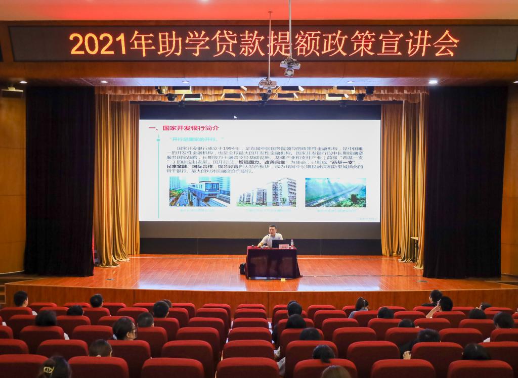 为深入贯彻落实国家资助政策,推动我校生源地助学贷款及贷款提额工作有序开展,学生处于9月30日上午10点30分,在下里巴人剧场组织召开2021年助学贷款提额政策宣讲会,会议邀请到国家开发银行重庆市分行生源地助学贷款业务经理李连鹏主讲,大二、大四年级辅导员及生源地助学贷款学生代表共计两百余人参与。