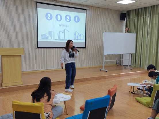 首先,她提到了新闻稿的格式规范如标题字体、正文字体、首行缩进等,并在大家吸收理解后现场互动提问,加深了大家对格式的记忆。在讲述新闻稿的结构和特点时马思颖副部长引用了“倒金字塔”概念,注意文章重要内容前置,或者可以以小标题为辅助,后面内容再根据主体进行展开。在此过程中,她首先强调了新闻稿整体需要有的真实性、准确性,并要求我们以逻辑为顺序,以数据为支撑,整体文章以客观语气进行写作。同时她提到,各部门干事需要了解新闻稿的新鲜价值与时效性,最高效的方式是活动当天晚上就写好初稿并交给各部门部长。最后的她希望各部门干事能用简明的文字抓住活动的重点并交代写新闻稿的注意事项,讲述多种方法以提高写新闻稿的效率和质量。