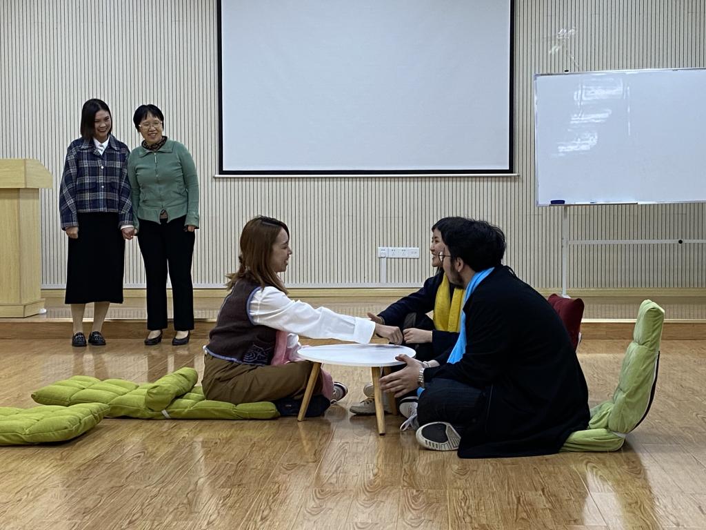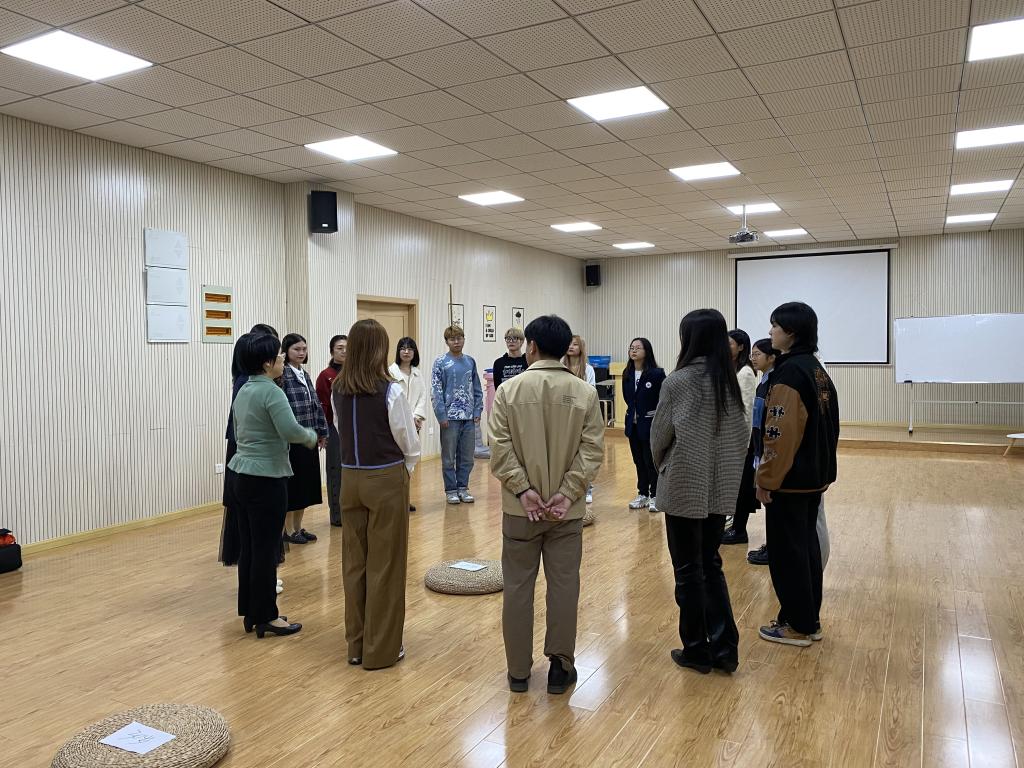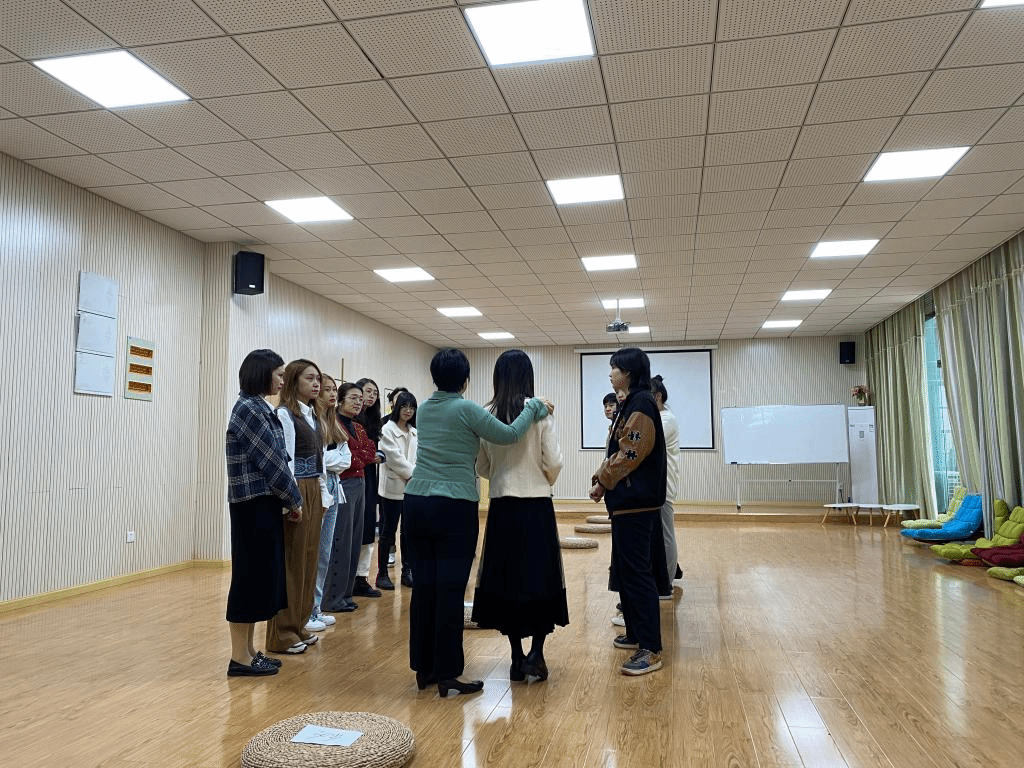 培训最后一项“心理剧”。由兼职心理咨询教师曾玉娇老师作为“明星”,以她生命成长中最记忆深刻的事作脚本,从其余的成员中分别选取三位作为事件中人物以及“明星替身”。在谭永红老师引导以及曾玉娇老师的回忆下,三位成员成功演绎曾玉娇老师记忆中的事件,不仅使曾老师再次得到疗愈,也使各位为他成员体会到“心理剧”带来的震撼效果。此项结束,谭永红老师让演员们“去角色化,再次要求大家围成小圈分享感受,大家都积极踊跃表达,在一片热烈的讨论声中,此次培训圆满结束。