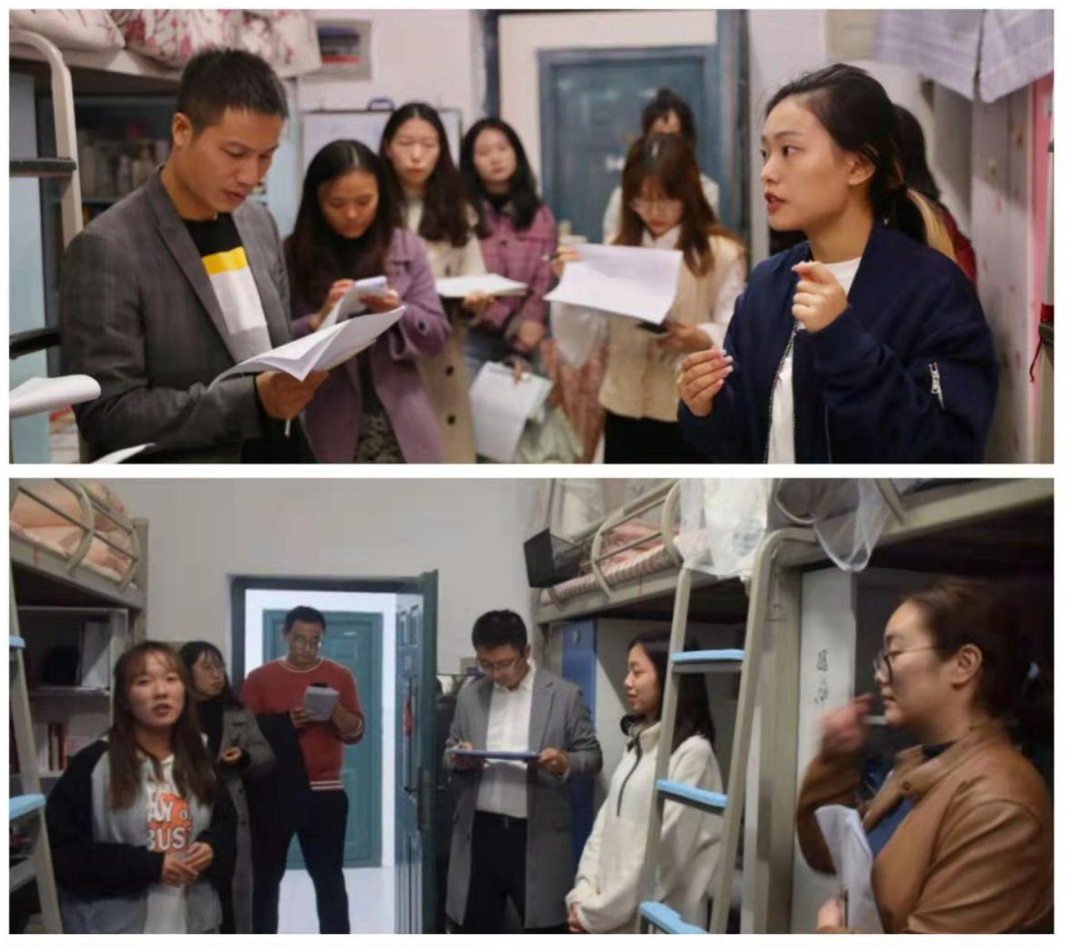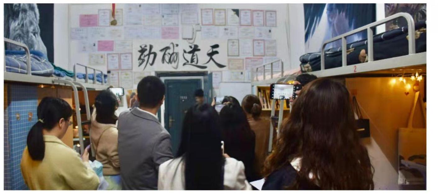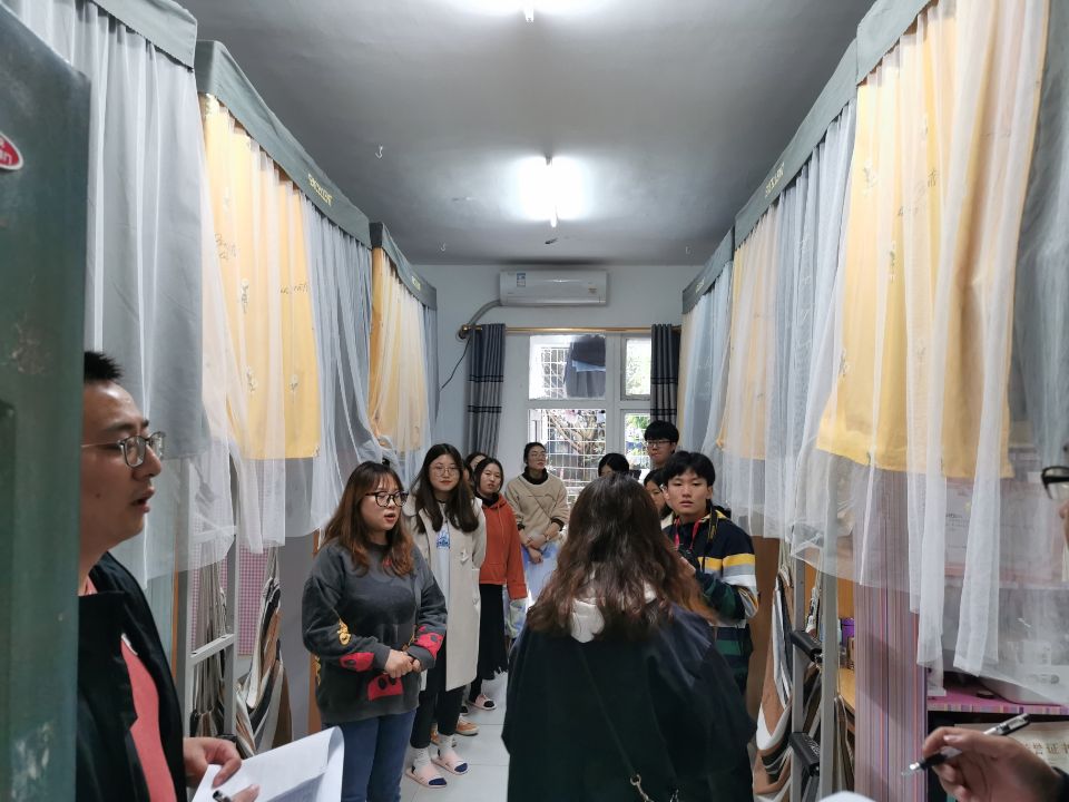 本次评选工作首先开展市级文明公寓现场评分环节,评审团老师依次走访了别都、花果、天渠、北山和爱莲书院这五栋宿舍公寓,各公寓分别安排讲解人对条件设施、制度建设、教育管理和文化建设进行介绍。北山书院集中打造落地北山的红岩基地,围绕“勤学、勤业、勤交友”的文化主题,以“勤”字内涵传递培养学生“坚持、勇敢、自信”的基点传递坚韧精神。爱莲书院注重空间内涵化建设,引用国潮装饰风格,独树一帜。别都书院学生学习氛围浓厚,经常开展学业辅导、专业指导、寝室结对帮扶等学习促进活动。花果书院设置专用公告栏、文化宣传栏、文化墙着重文化传承。天渠书院积极发挥朋辈力量,提升学生的认同感。看到如今百花齐放的状态,周校长表示应该继续增强学生公寓的引导作用,大力传递家文化,将书院的特色和打造的“力”真正运用到我校每一位同学身上。市级文明公寓现场评选结束后,由学生处副处长陈帅带队北校区评审组,学生处宿舍管理中心主任佘桂隆带队南校区评审组,开展市级文明寝室现场评选工作。
