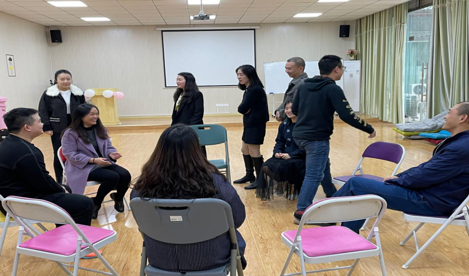 接下来,进入团辅体验活动,老师们参与了“我是‘小厨师游戏’”,在龙老师讲解完游戏规则后,老师们围成一个圈坐,在他们中随机抽取一位老师帮厨师做菜命名,抽取到的老师要说出自己名字跟着走厨师走,最后厨师说做好了,老师们就迅速坐到椅子上。这使得游戏的气氛一下到了高潮,老师们大展风采,全身心投入游戏中。随着游戏的不断深入,气氛的不断活跃起来,老师之间的距离也逐渐拉近。