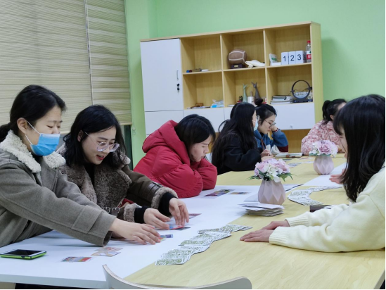 第四个环节是“OH卡牌”分析,老师从88张卡牌中抽出9张牌,并从9张牌中选出6张,而后通过不同的图案和文字的组合,编写一个小故事。从而增强老师们的自我觉察,亲近自己的潜意识。