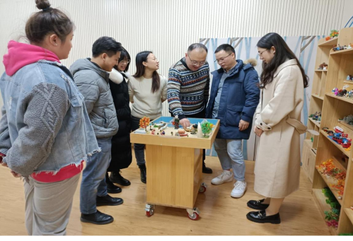 第二个环节是沙盘体验,此环节由大数据与软件学院李婷老师带领,共三组,每组3-6名老师,按小组依次体验。首先是感受沙盘、讨论主题,随后根据所选主题,小组成员依次拿一个或一组沙具放入沙盘,经过三轮摆放最后完成一幅画作,并为画起名。随后李婷老师根据物品摆放的方向、状态、种类、原因以及老师们在此次过程中的感受来进行讲解,讲解完成后老师们也纷纷表示收获颇丰。