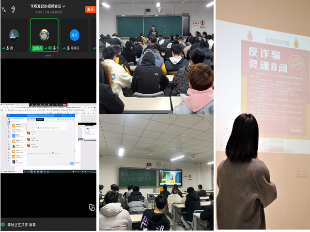 宣讲形式多样,包括主题班会、年级会、线上视屏会议等,积极与学生建立良好沟通,更好地宣传反诈知识。将“反诈”智慧传递给每一个学生,保护学生利益,为打造安全的校园信息环境赋能。据学生反馈:“宣讲会现场互动,既让我们了解了反诈小技巧,也使得宣讲更加生动。”