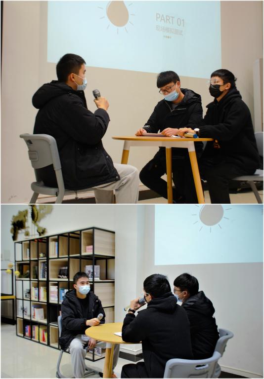 主持人高嘉敏同学介绍,许多专升本来到移通的同学还在适应新的环境,虽然经历了专升本考试,但对未来感到迷茫、对职场感到陌生,所以想由两组同学为大家演绎他们自己想象中的招聘面试,引发大家的思考。第一组是来自机器人工程专业的刘坤、罗雲开、叶家锣同学为大家展示的模拟,叶家锣扮演求职者,刘坤、罗雲开扮演面试官,他们所展现的是专业不对口求职模拟面试,由于求职者专业不对口,面试时指鹿为马引得现场同学哄堂大笑;第二组是由机器人工程专业的张齐勇、杨鸿玉同学扮演面试官,王顺杰同学扮演求职者,模拟面试的是专业对口的岗位面试,但由于面试者准备非常不充分,出现了许多啼笑皆非的场面。而后黄学彬总经理针对两组同学的模拟面试进行点评,指出这些情况确实在招聘现场出现过,提醒大家在求职时一定要做好充足的准备,让用人单位看到他们的诚意。