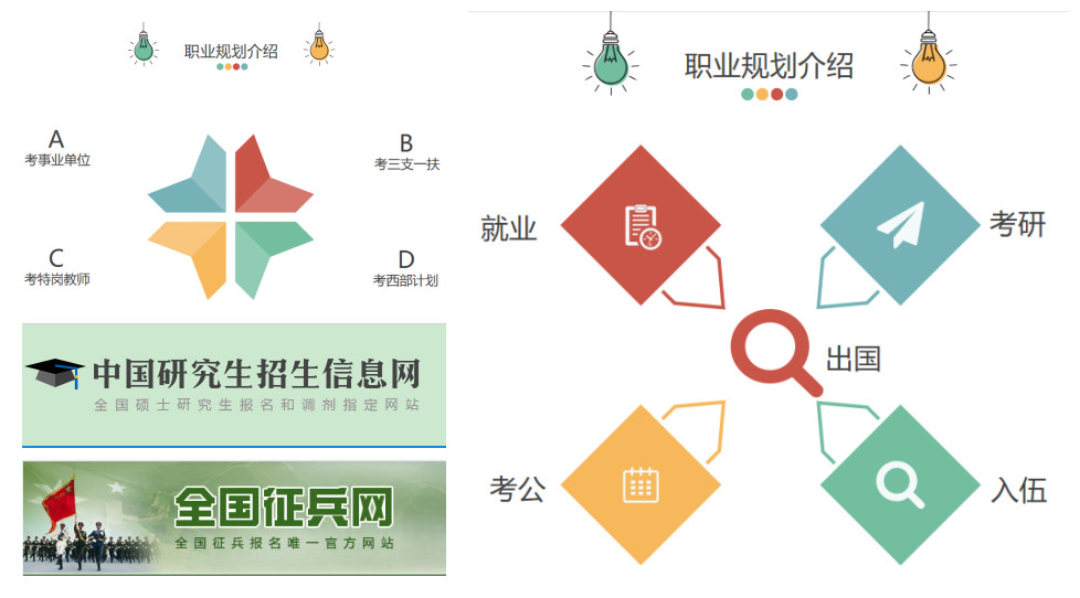 对于有出国打算的同学,吴老师建议先衡量是否具备现实条件,自己在权威机构查询相关的语言要求,做好相对应的准备,一定要努力交出漂亮的大学成绩单;然后,吴老师对考公务员、选调生、事业单位一一展开说明,建议大家根据实际情况做判断;另外,吴老师为大家科普了三支一扶、特岗教师、大学生志愿服务西部计划的相关知识,以自己已毕业学生为例展开详细的介绍,让大家拓宽职业赛道。