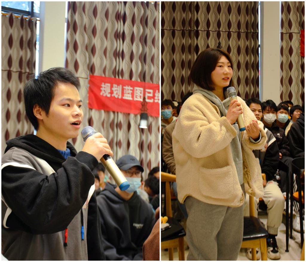现场同学踊跃发言,线上同学弹幕不断,辅导员吴家家老师接着向同学们展示最近在各大招聘网站上机器人工程、车辆工程专业对应的招聘情况,以内燃机工程师、机器人工程师等岗位为例,为同学们分析其工作内容和招聘要求,为了让同学们在剩下的一个学期里,查缺补漏,更进一步。随后,吴老师为大家详细介绍考研、考公、出国、入伍等方向。首先播放了一名网友考研复习的真实记录,告知同学们追问考研的初心,遵从内心的选择而非盲目跟风,是否自律,是否毅力佳,如果合理定位和方法得当,成功概率便会增大;如有毕业后想征兵入伍的同学,要通过全国征兵网查询正确信息,了解清楚军种、地区、方式,明确自己入伍的目的是什么,是否能吃苦,是否做好了当职业军人的准备。