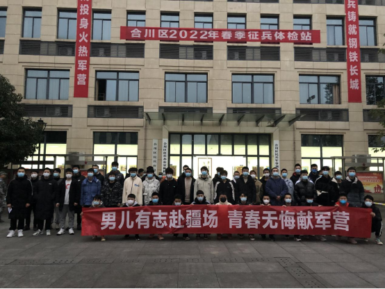 根据重庆市合川区人民政府征兵办公室《合川区2022年高校春季征兵体检实施方案》(合征〔2021〕41号)文件精神,我校征兵工作站于12月30日上午7时整统一组织应征地为我校51名在校及毕业班学生乘校车前往合川区人武部参加上站体检。