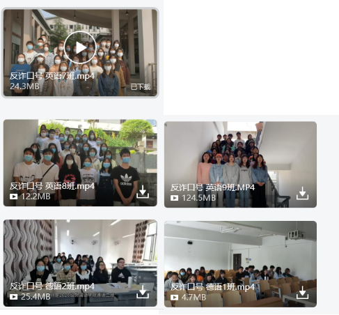 外国语学院各班级以主题班会的形式进行班级内部的防诈宣传,制定自己班级的防诈口号,通过拍摄短视频的形式对班级的防诈口号进行宣传。