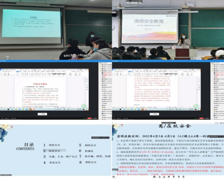 会议要求,一是鼓励学生留校过节,非必要不离校,非必要不离合,非必要不离渝,倡导采用线上祭祀寄托哀思,文明过节;二是严守假期疫情防控相关规定,辅导员掌握学生轨迹去向,外出返校核验行程码与健康码,做到一人一档;三是全体辅导员做好节前安全教育,突出强调假期防疫安全、交通安全、消防安全;四是对于留校学生、校内活动学生做好分类管理,关注学生动态,把握学生动向;五是要加强假期校内值班值守,切实做好留校师生的管理服务工作。