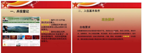 5月为学校集中宣传月,我校各学院广泛运用数字化网络宣传手段,通过相关微信公众号推送相关新闻,召开征兵业务培训会、宣讲咨询、退役军人座谈会会等多种形式,进行全方位宣传和具有针对性的宣传动员,大力营造“当兵光荣、当兵受益、当兵成才”的氛围,宣传征兵工作有关政策法规,充分调动全校学生参与和支持征兵工作的整体性和积极性,激发适龄学生应征参军热情。