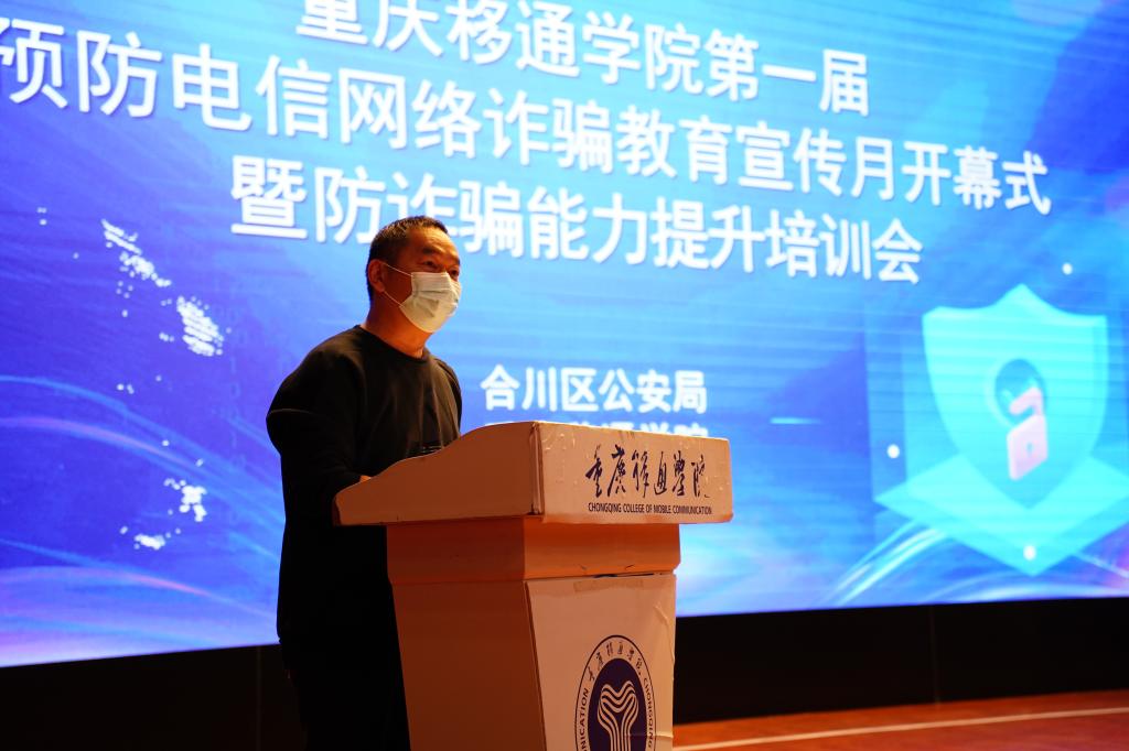 本月预防电信网络诈骗教育宣传月将围绕“防诈骗技能提升”加强辅导员的防诈骗知识;“加强学院防诈骗学生队伍建设”为各学院组建防诈骗学生骨干赋能;“猫头鹰宣讲团走进年级会”、“防诈骗作品设计比赛”等形式开展。本次开幕式上,重庆移通学院保卫处处长彭洪介绍了我校近一年来的防诈骗工作措施及成效,希望师生们一定要提高警惕预防电信网络诈骗,鼓励“猫头鹰”防诈志愿服务支队为带领全校师生共创无诈校园而努力,同时也希望大家在会上好好学习,将防诈知识带回学院做好宣传,最后也预祝本月的教育宣传工作取得圆满结束。