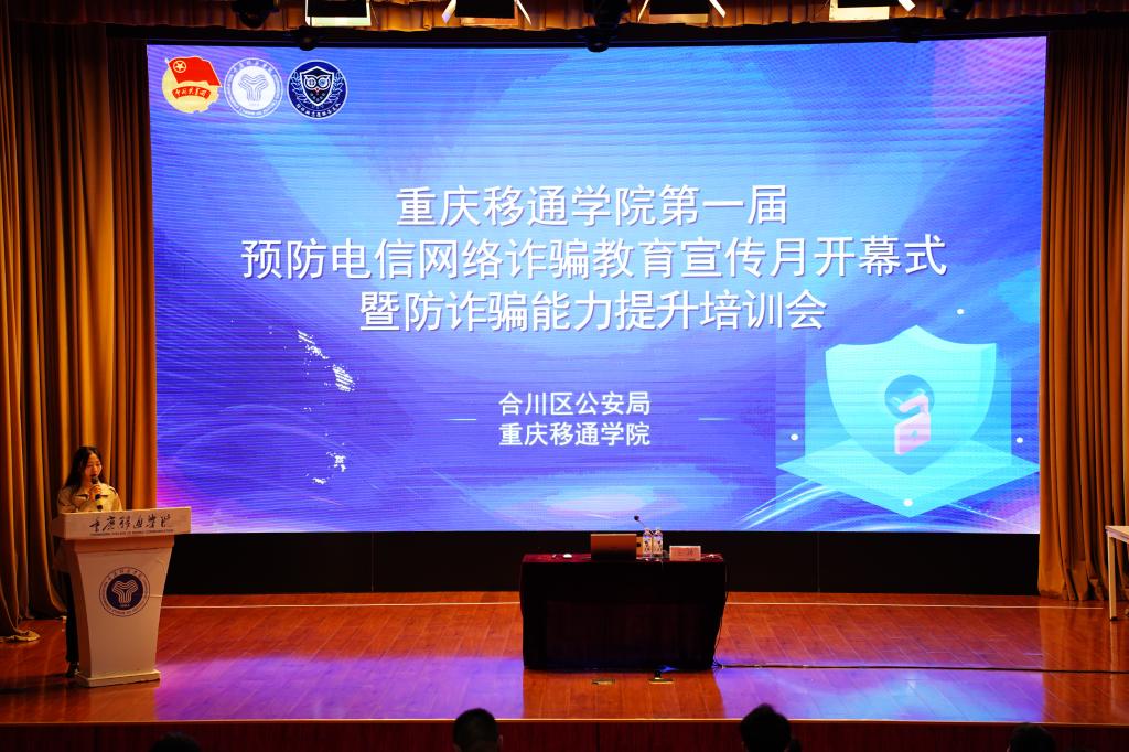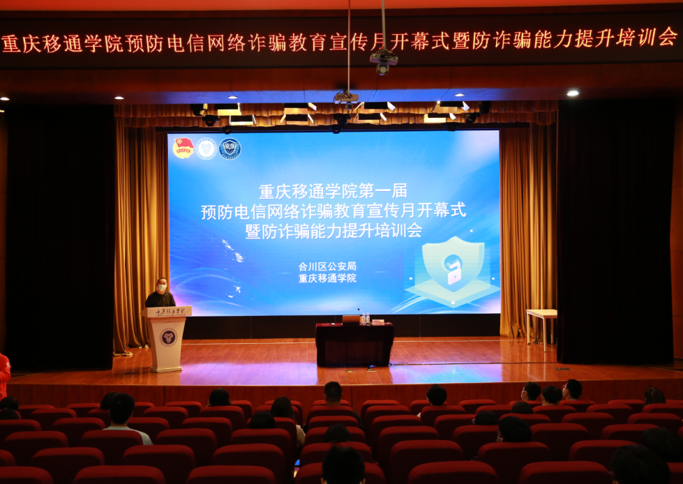 为进一步建设无诈校园,提高师生的反诈、防骗能力,重庆移通学院保卫处、学生处联合“猫头鹰”防诈志愿服务支队于本月开启第一届重庆移通学院预防电信网络诈骗教育宣传月活动,将通过集中培训、反诈调研、支队建设、全员宣讲等形式将反诈意识入脑入心。2022年10月5日,重庆移通学院第一届预防电信网络诈骗教育宣传月开幕式暨防诈骗技能培训大会在下里巴人举行。重庆移通学院保卫处处长彭洪、学生处处长陈帅、远景学院学工副院长李军、重庆市合川区防诈骗中心新型犯罪侦察大队教导员王坤以及学校2022级新生辅导员和各年级主要学生干部参与培训,此次培训由“猫头鹰”防诈志愿服务支队指导老师杨斌誉主持。