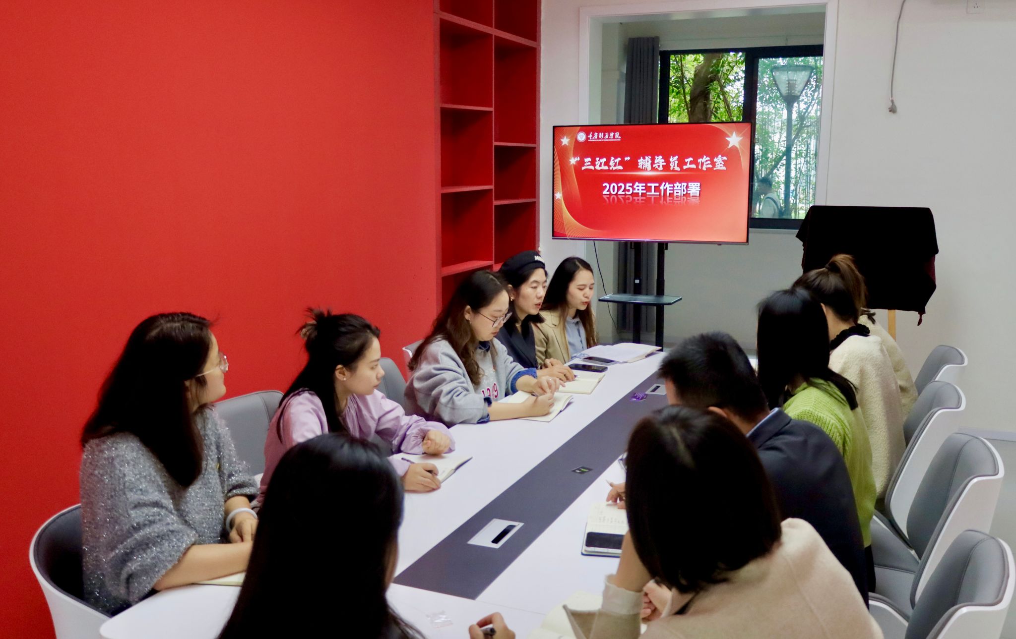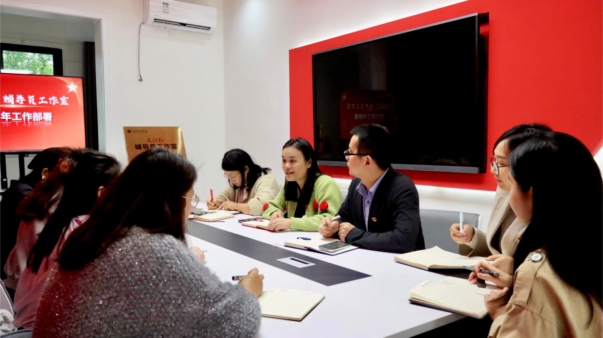 11月5日10时,“三江红”辅导员工作室揭牌仪式暨2025年工作部署会议在北山书院顺利开展,工作室全体教师成员及北山书院执行院长向艳平老师参与会议,主要围绕工作室揭牌、成员分工、工作室文化打造、2025年工作部署等内容开展,老师们积极建言献策,共助工作室未来长远发展。