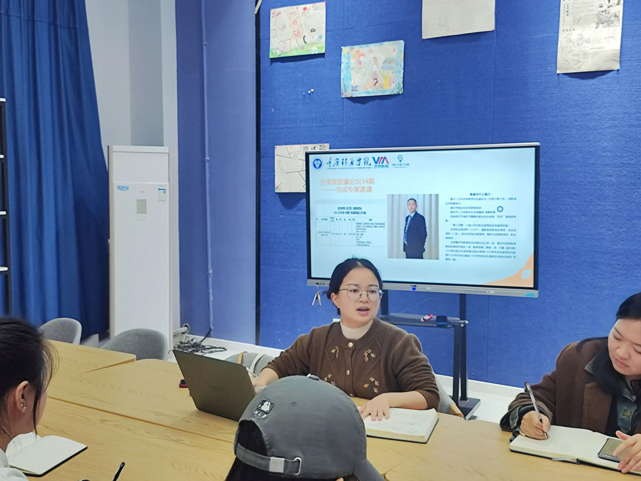 11月11日,工作室成员于綦河书院2号楼QH5555功能室举办了11月工作交流会,本次会议由工作室主持人阙小梅老师主持,会议围绕10月工作回顾、11月工作梳理、学期学年工作规划部署、交流讨论等方面开展。