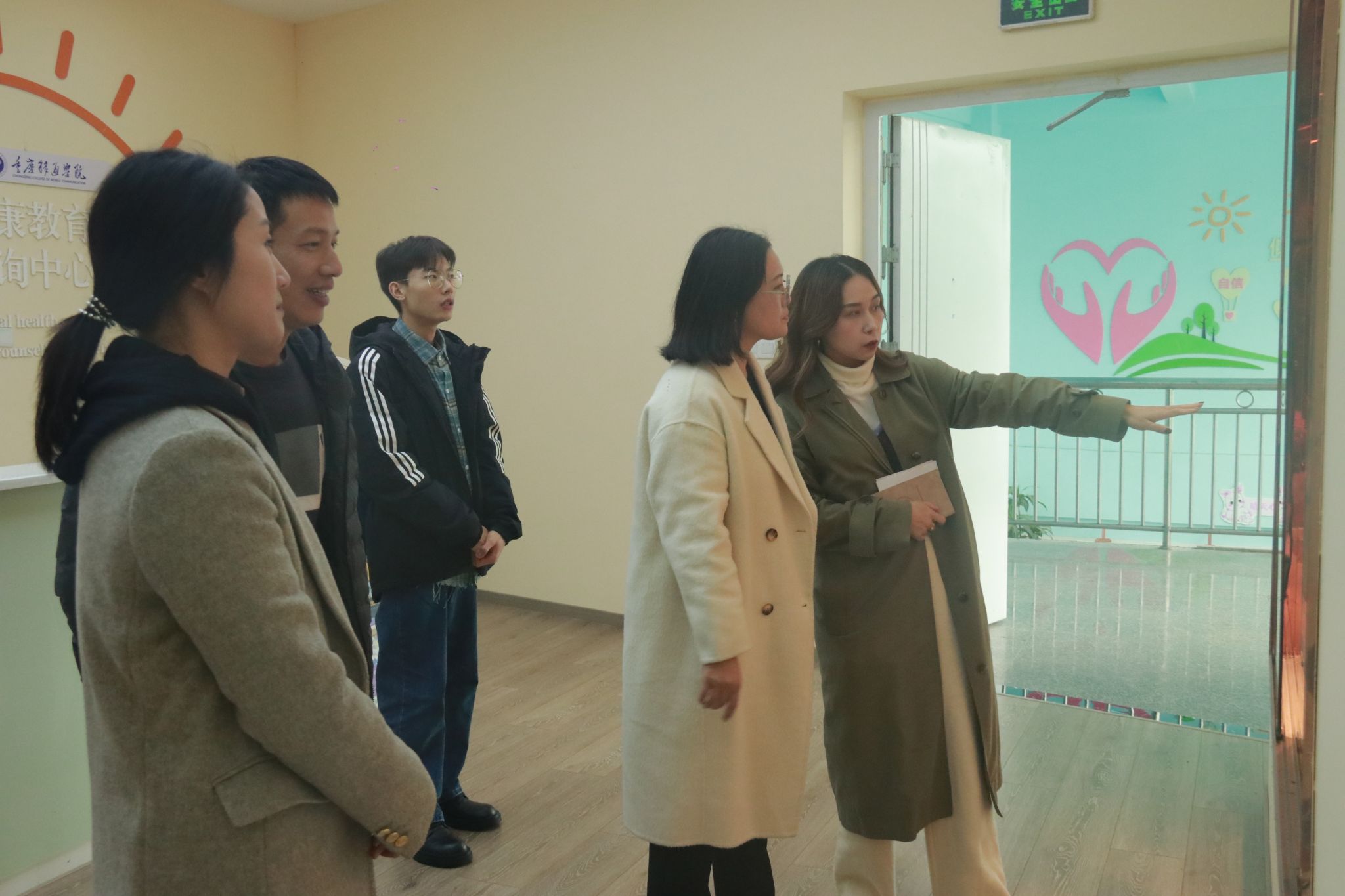讲座结束后,在我校学生处处长陈帅的带领下,心理健康教育与咨询中心田雨主任、学生科副科长陈思陪同舒教授参观了我校心理咨询室、团体辅导室、心理测评室等功能室和鱼城书院。田主任细致介绍了各功能室的设施配备、核心功能及日常心理咨询服务项目等。参观完后,舒教授对我校心理咨询中心完善的设施设备、温馨的咨询环境以及专业化的服务给予了高度评价。