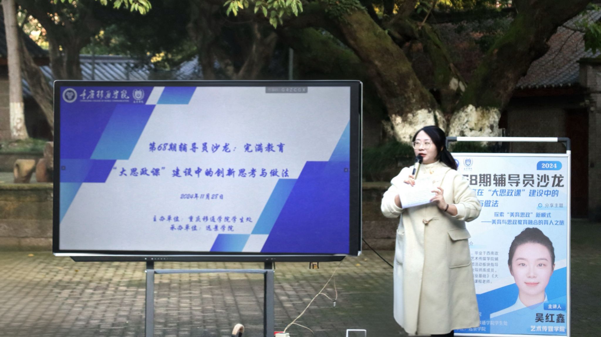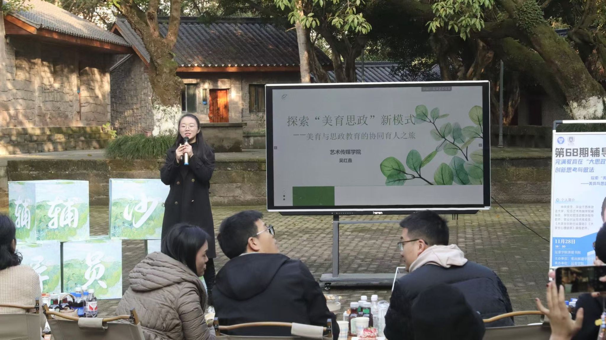 在经验分享环节,艺术传媒学院吴红鑫老师在分享中提出“美育思政”新模式,强调美育与思政教育协同育人的重要性,深入剖析了美育与思政教育协同育人的重要意义。吴老师讲到美育与思政教育二者相互交融、相辅相成,育人方式上将美育潜移默化,明确思政方向,二者互补能提升学生综合素养,推动社会进步。她指出艺术传媒学院通过将非遗传统文化活动融入思政教育,能够提升学生的思想水平、审美修养,增强文化自信,为高校美育与思政教育融合提供了新视角。