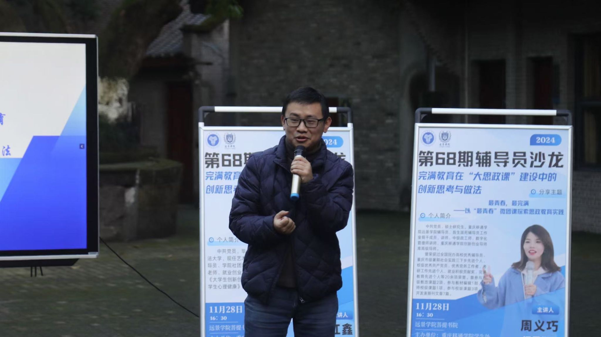 远景学院周义巧老师介绍了特色的“最青春”微团课创新实践。这一课程以时间短、主题明确、内容丰富、形式多样等特点,紧密贴近新时代青年思维模式。周老师详细讲解了“最青春”微团课的“两问三学四做”创新做法,问需于学生、问计于学生,学党史团史、学优秀榜样、学新思想新理论,做有理想、有担当、敢奉献、善学习的青年。在开展形式上,通过走访革命遗址、纪念馆,座谈采访老党员,聆听革命故事等多样化方式,增强团课吸引力与实效性,在大学生思想引领方面成效显著,为思政教育实践提供了新路径。