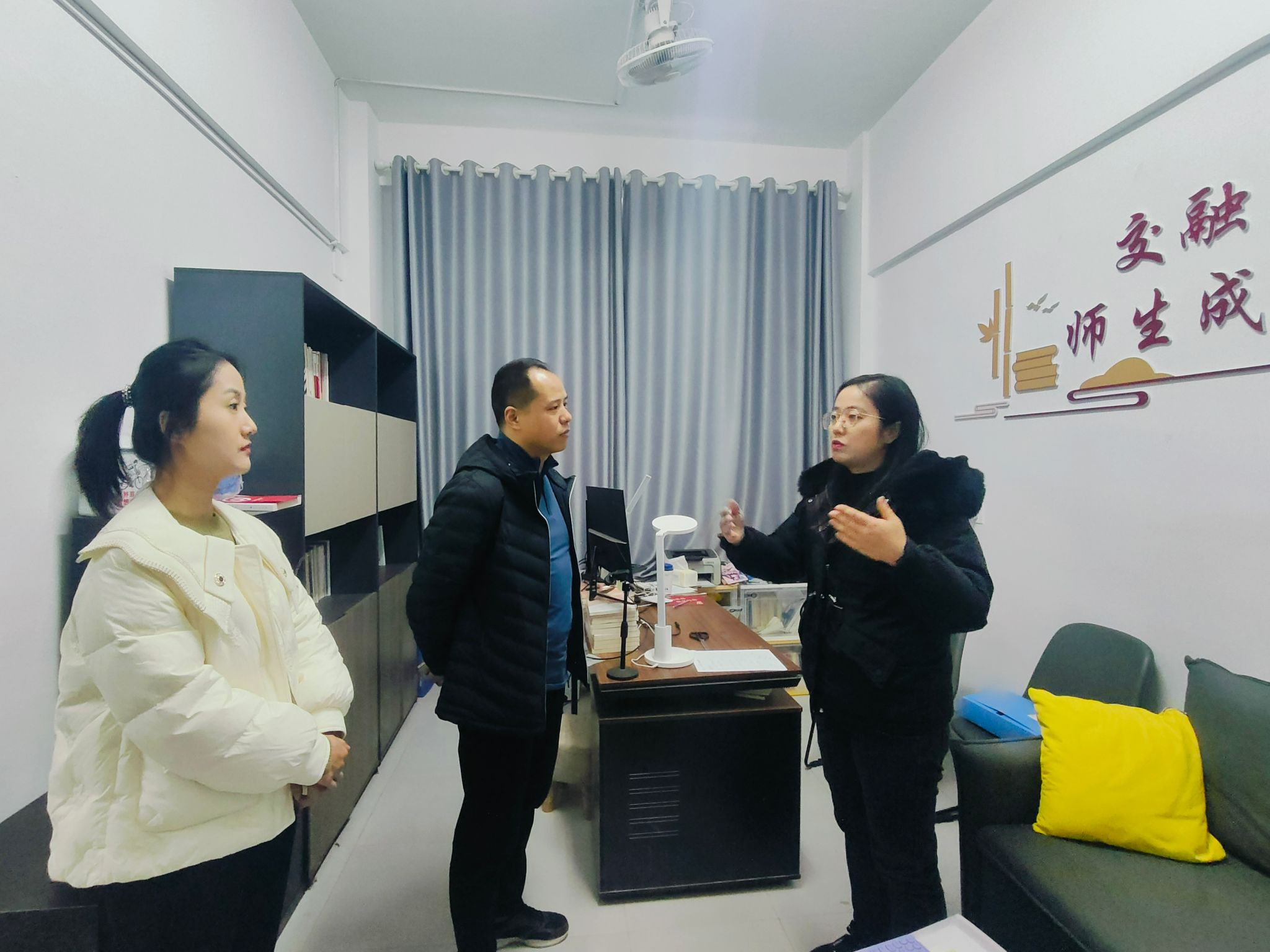付妍妍辅导员工作室,坐落于文化底蕴深厚的江西师范大学校园内,是该校学生工作领域的一颗璀璨明珠。工作室自成立以来,始终秉持“立德树人,全面发展”的宗旨,致力于成为学生心理健康、职业规划、学业指导等方面的坚实后盾。工作室由全国教育系统先进工作者付妍妍老师领衔,汇聚了一批热爱学生工作、专业素养高的辅导员团队。此次参观交流,旨在学习付妍妍辅导员工作室在学生日常管理、文体活动组织、思想政治教育等方面的先进经验和做法,进一步提升“青春护航”辅导员工作室的工作水平和能力。