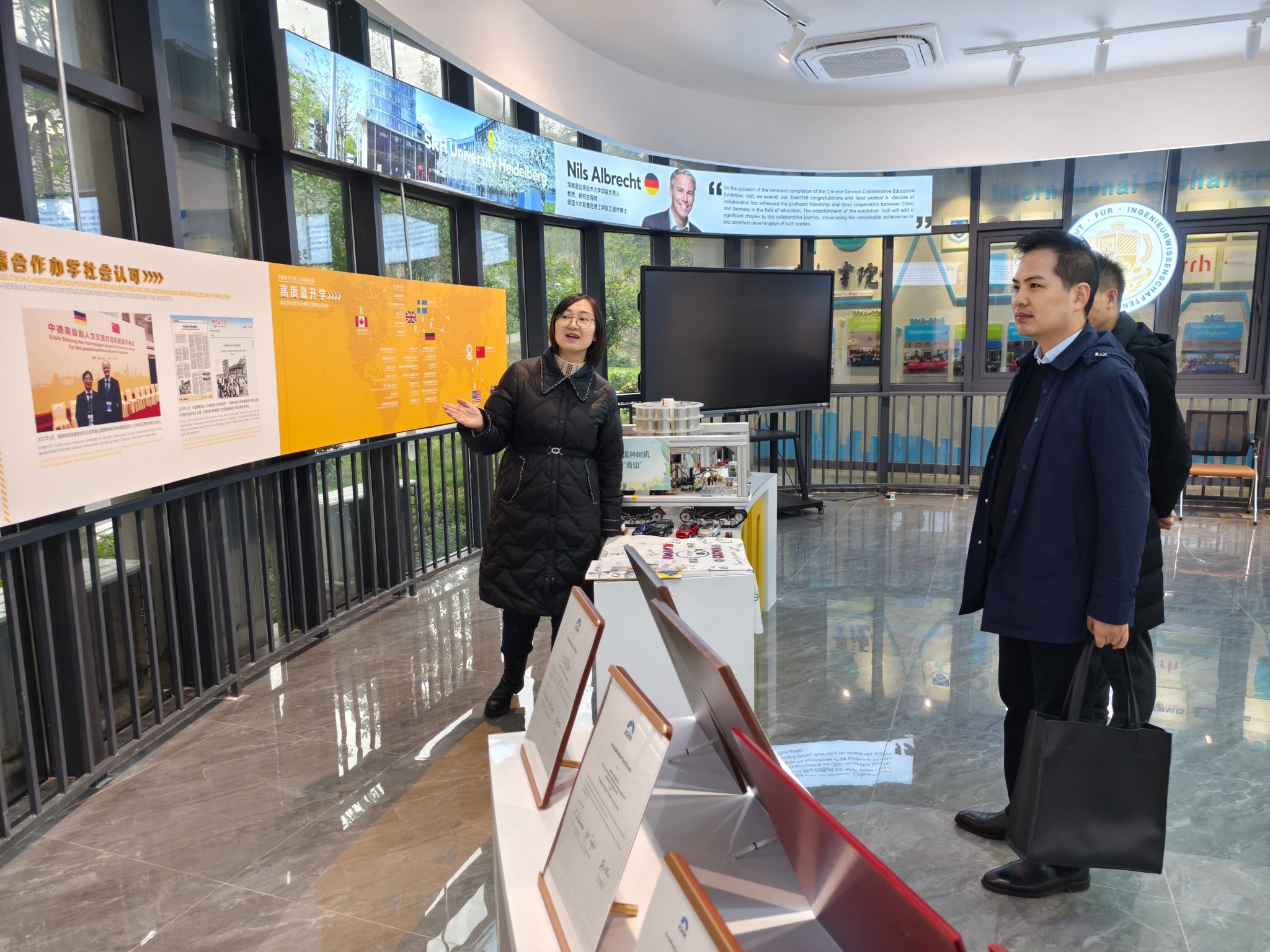 讲座结束后,学生处陈帅处长带领胡部长参观了南湖书院,在书院老师细致的讲解中胡部长了解到我校“四位一体双院制+特色课程”的人才培养模式,同时对这种创新的人才培养模式表现出浓厚兴趣。他认为,这样的教育模式不仅能增强学生的综合素质,还能激发他们的创新思维与实践能力,为学生未来的全面发展奠定了坚实基础。