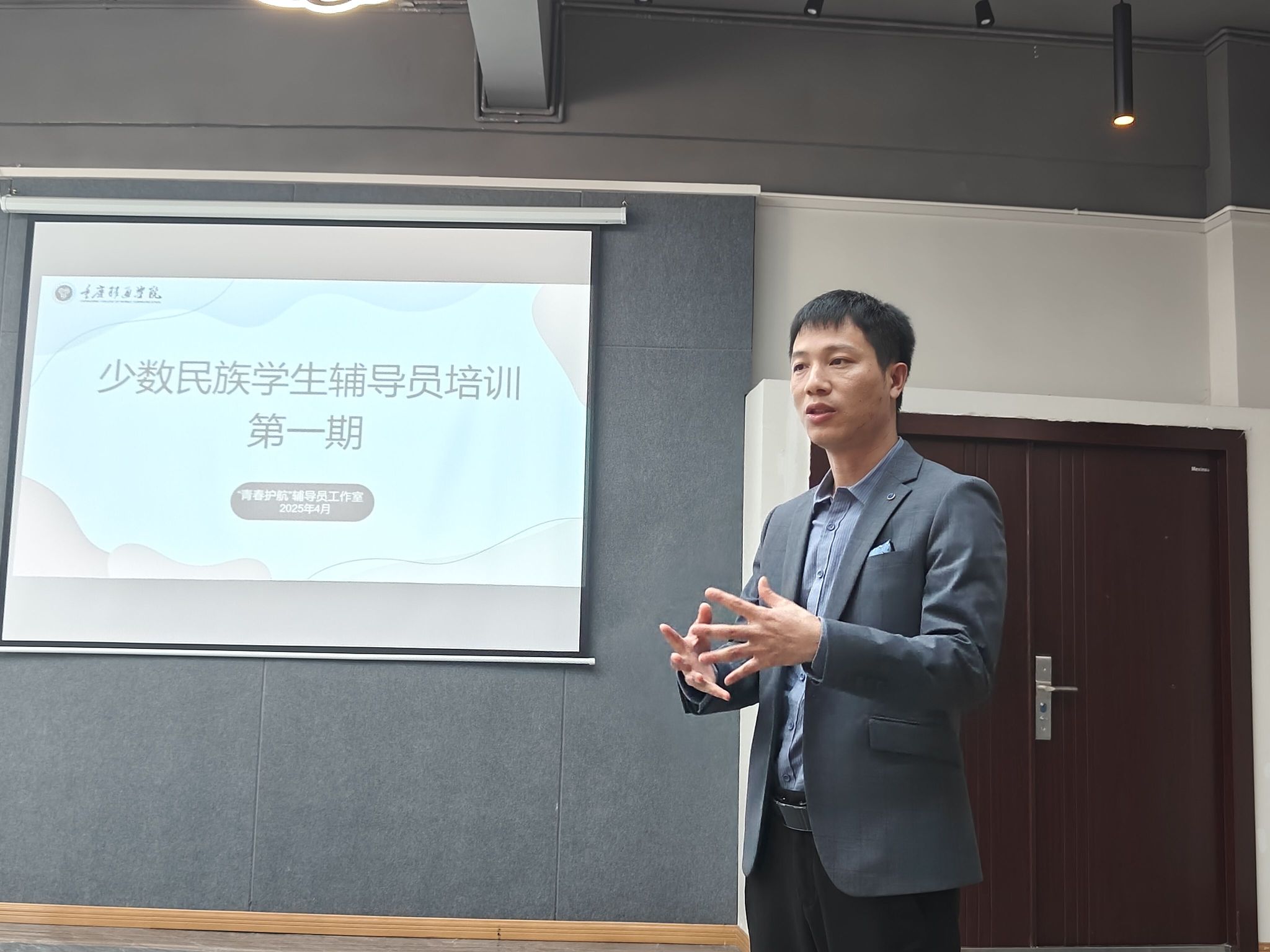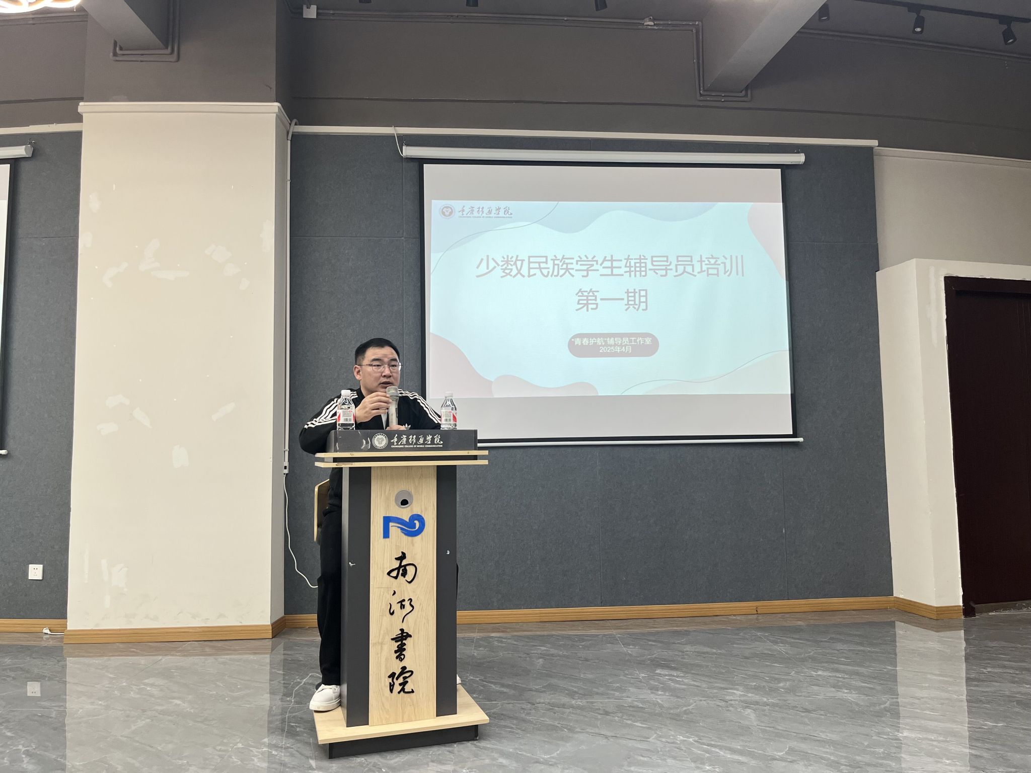 4月9日,由青春护航辅导员工作室主办的少数民族学生辅导员第一期培训会在南湖书院声影活动室顺利举行。本次交流会特邀合川区公安局胡磊警官作专题指导,智能工程学院学工副院长祝伟、学生处处长陈帅、保卫科科长郑好出席活动,各学院辅导员代表及工作室全体成员共同参与学习研讨。