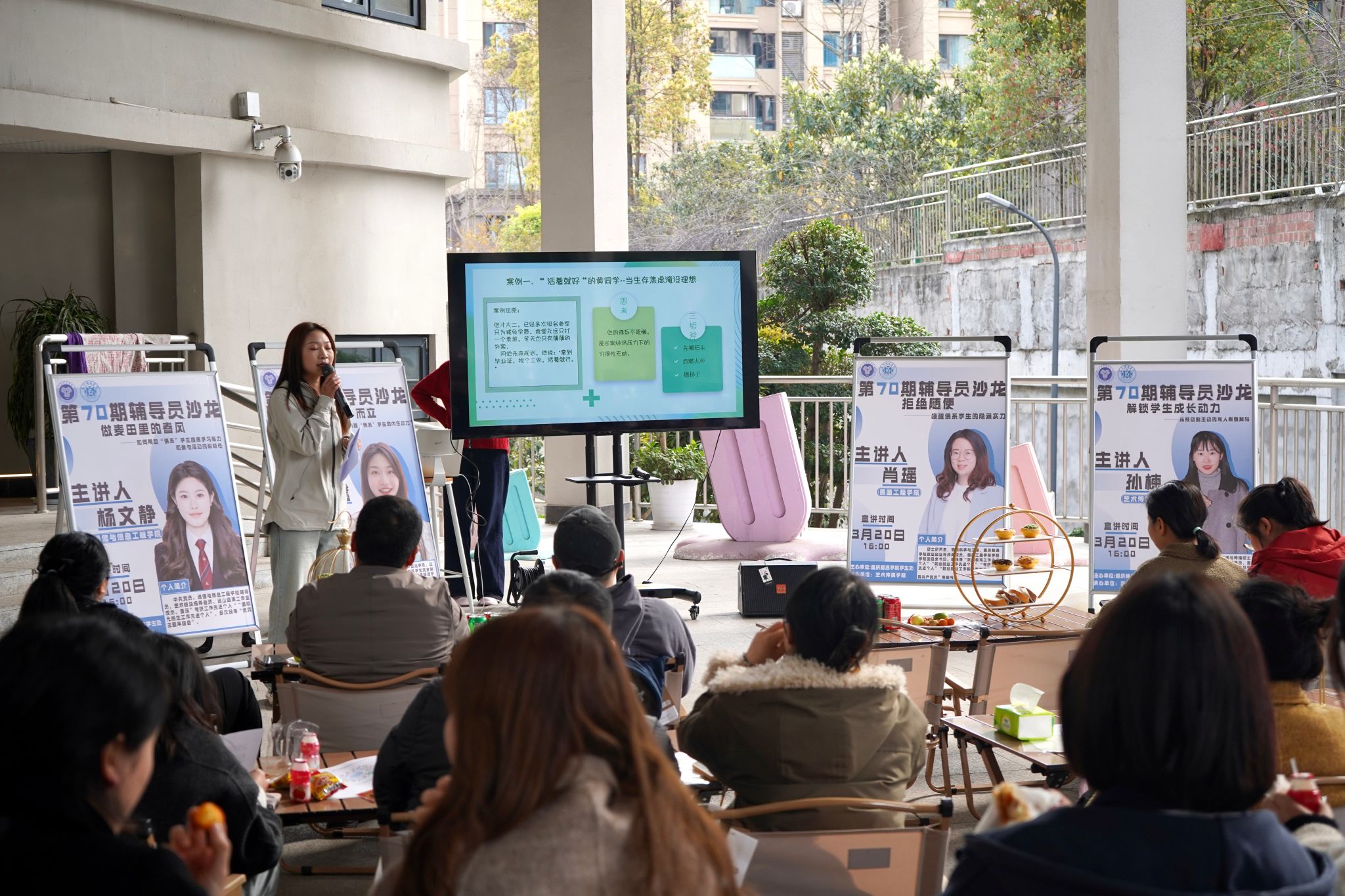 在当下大学校园里,“佛系学生”现象日益引发关注。围绕“唤醒佛系学生”这一紧迫议题各抒己见,共同探寻更有效的育人新路径 ,旨在为学生成长注入新活力,助力他们积极拥抱大学生活,为未来发展积蓄力量,第70期辅导员沙龙于2024年3月20日下午四点在天空书院星空广场如期举行。此次活动汇聚了众多教育工作者,共同聚焦“佛系”学生现象,分别关于拒绝随便、解锁学生成长动力、破“佛”而立、做麦田里的春风四个主题进行分享和交流,为学生成长赋能。