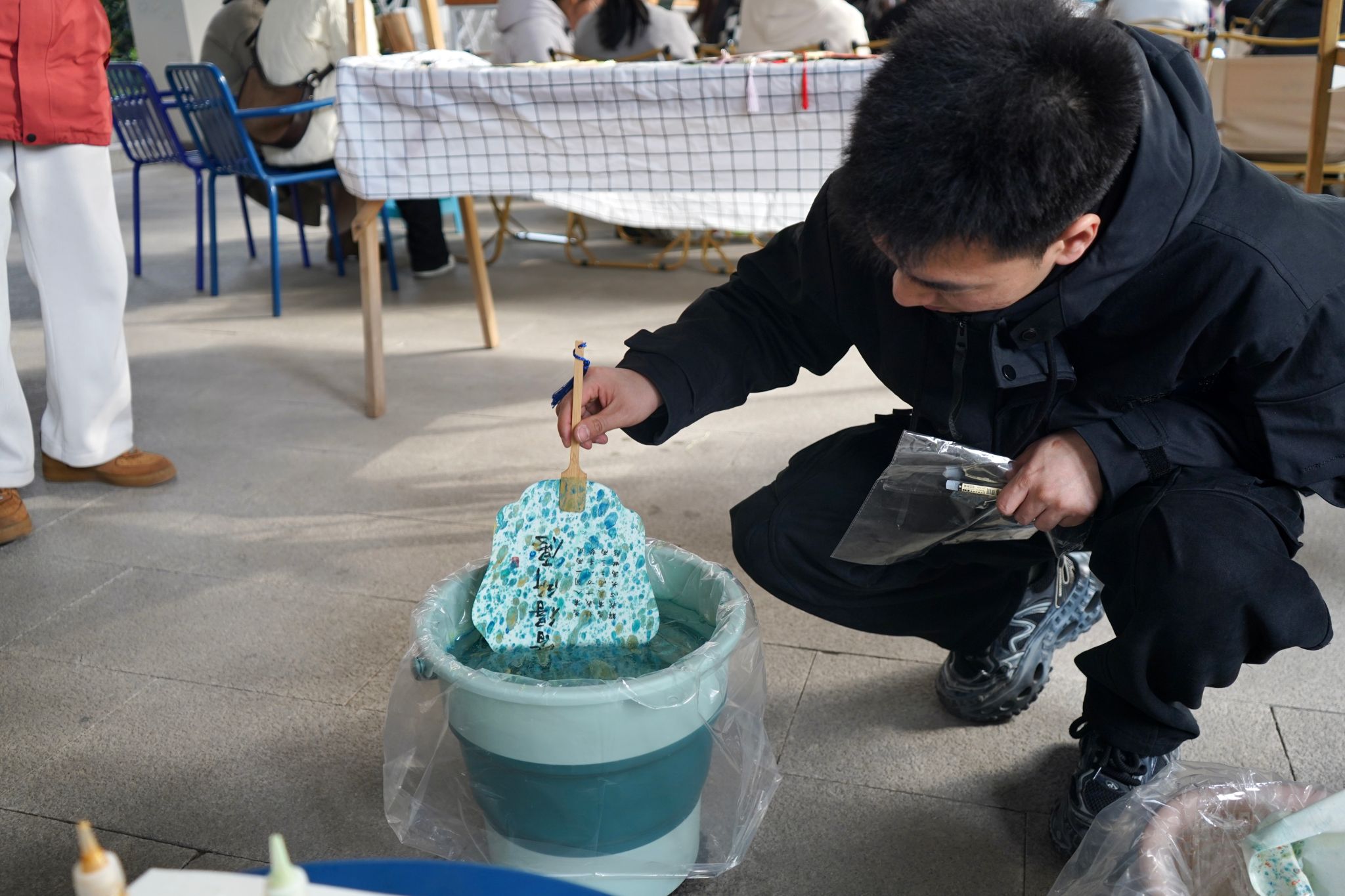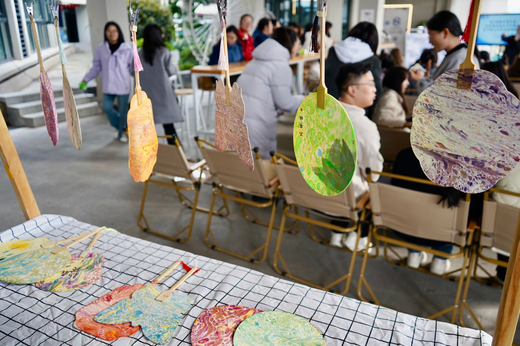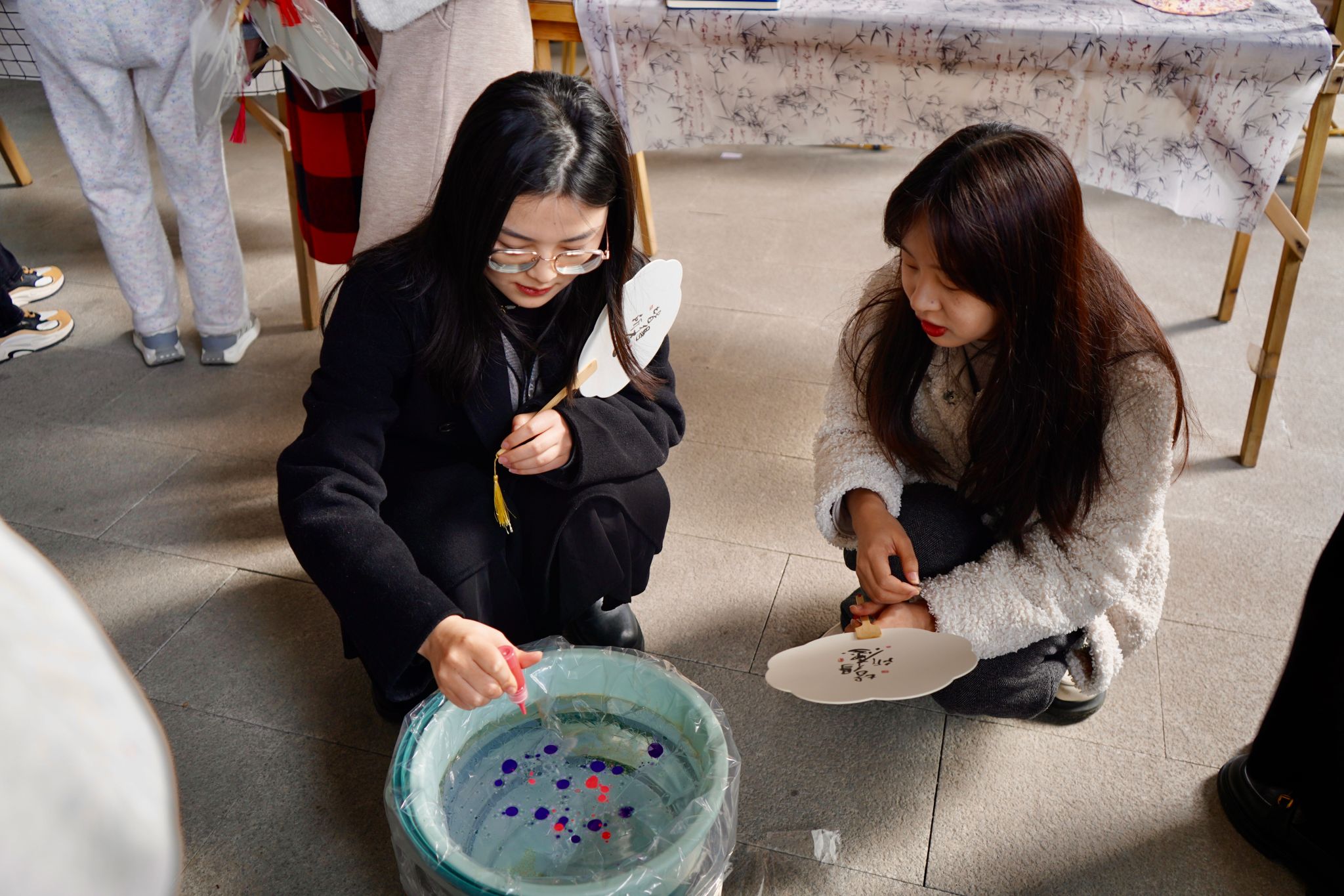 交流环节结束后,一场别出心裁的漆扇制作活动将气氛推向高潮。老师们亲手体验这门古老工艺,专注投入。在制作过程中,大家相互协作、交流技巧,不仅掌握了漆扇制作的要领,更深刻感受到传统文化的魅力。