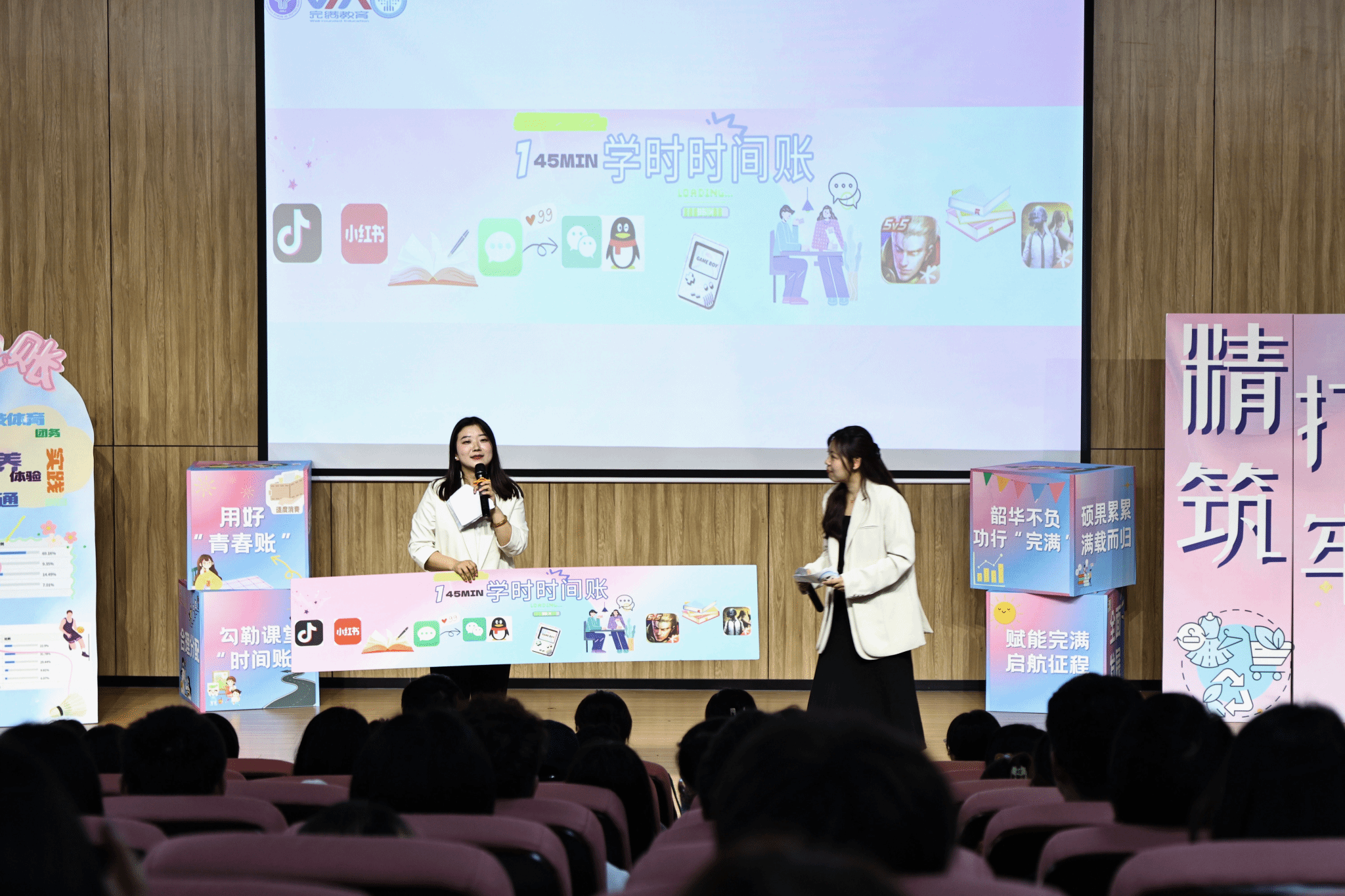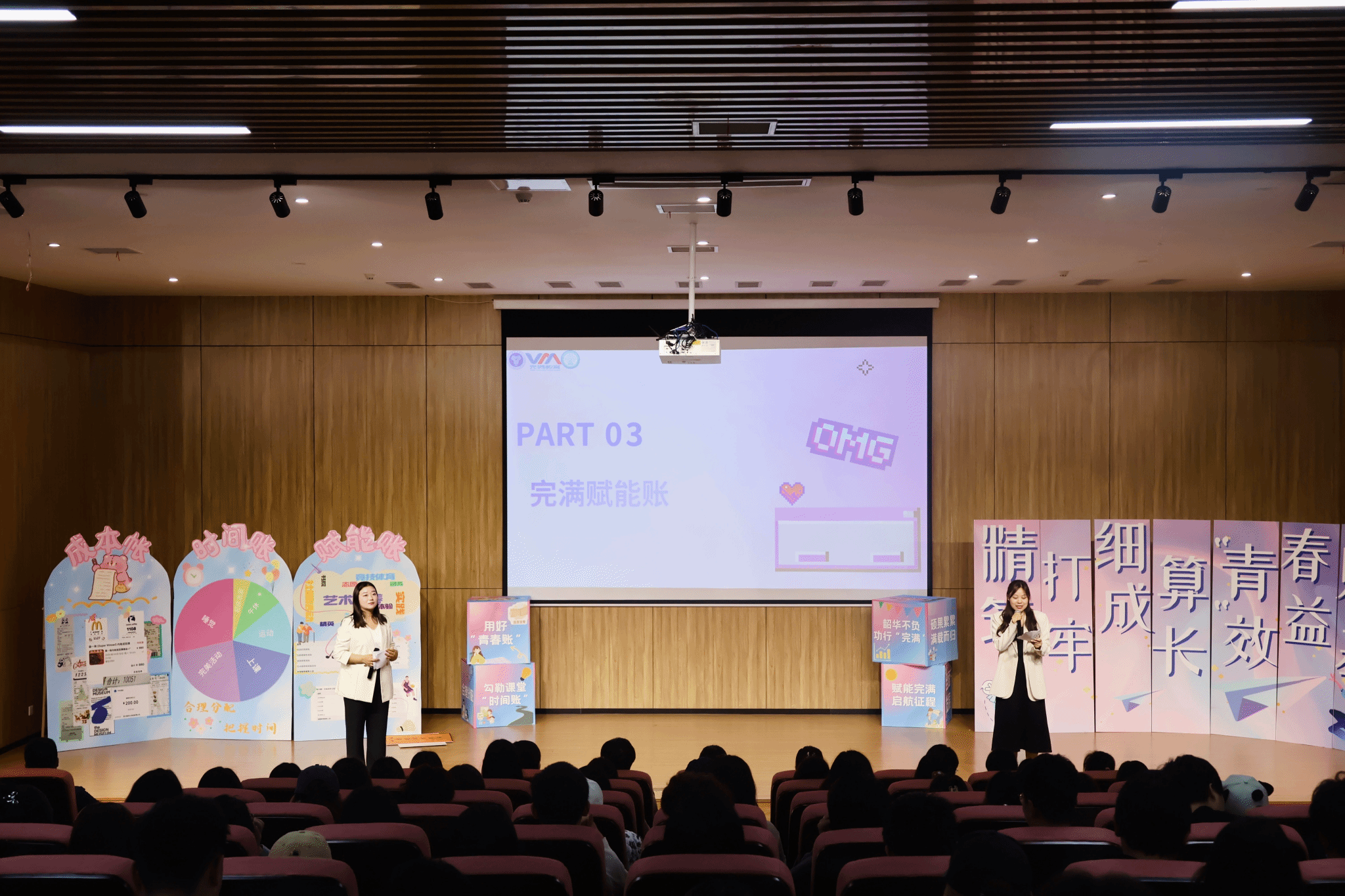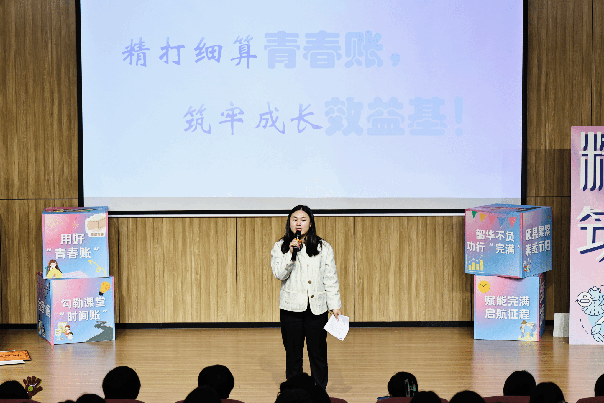 青春另一笔重要“财富”——完满赋能成为全场关注焦点。付老师通过四个维度,为同学们算出“完满赋能指数”,现场同学们也积攒了许多优秀故事并积极分享,他们讲述自身在艺术修养、志愿服务等板块的蜕变,从团队中默默做事的“小透明”,成长为台上熠熠生辉的“大明星”,赋能效果堪比哈利·波特的魔杖。