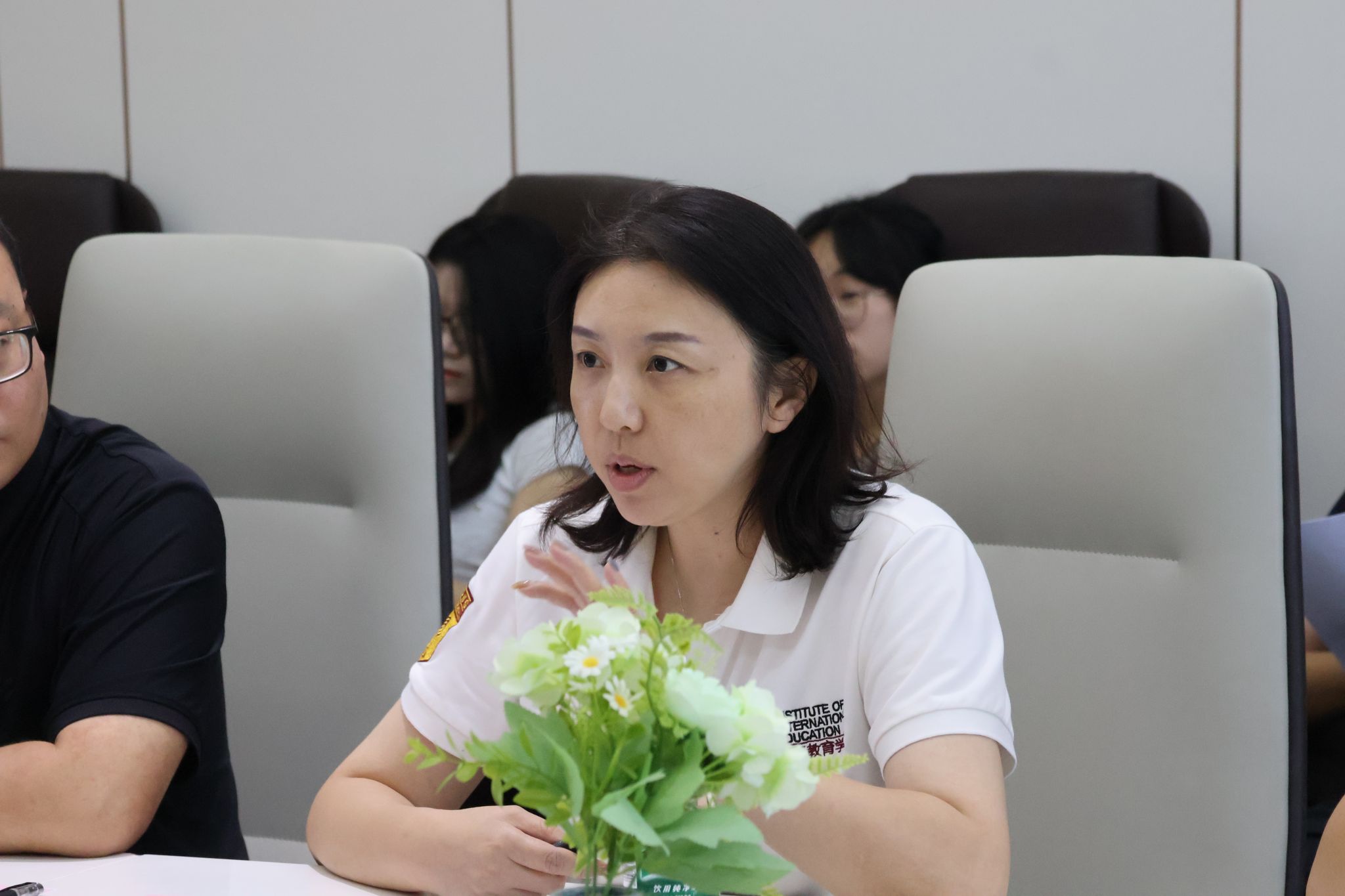 国际教育学院学生工作负责人杨德龙接过话题,介绍“四学三化”工作体系,“四学”既招生、教学融通、学生发展、成才反哺,“三化”以多样化、品牌化、差异化开展系列活动促进学生成长,例如红酒品鉴、国际教育周等。计划进一步完善学生组织建设、综合测评等问题,并借助留学生资源强化国际化氛围。
