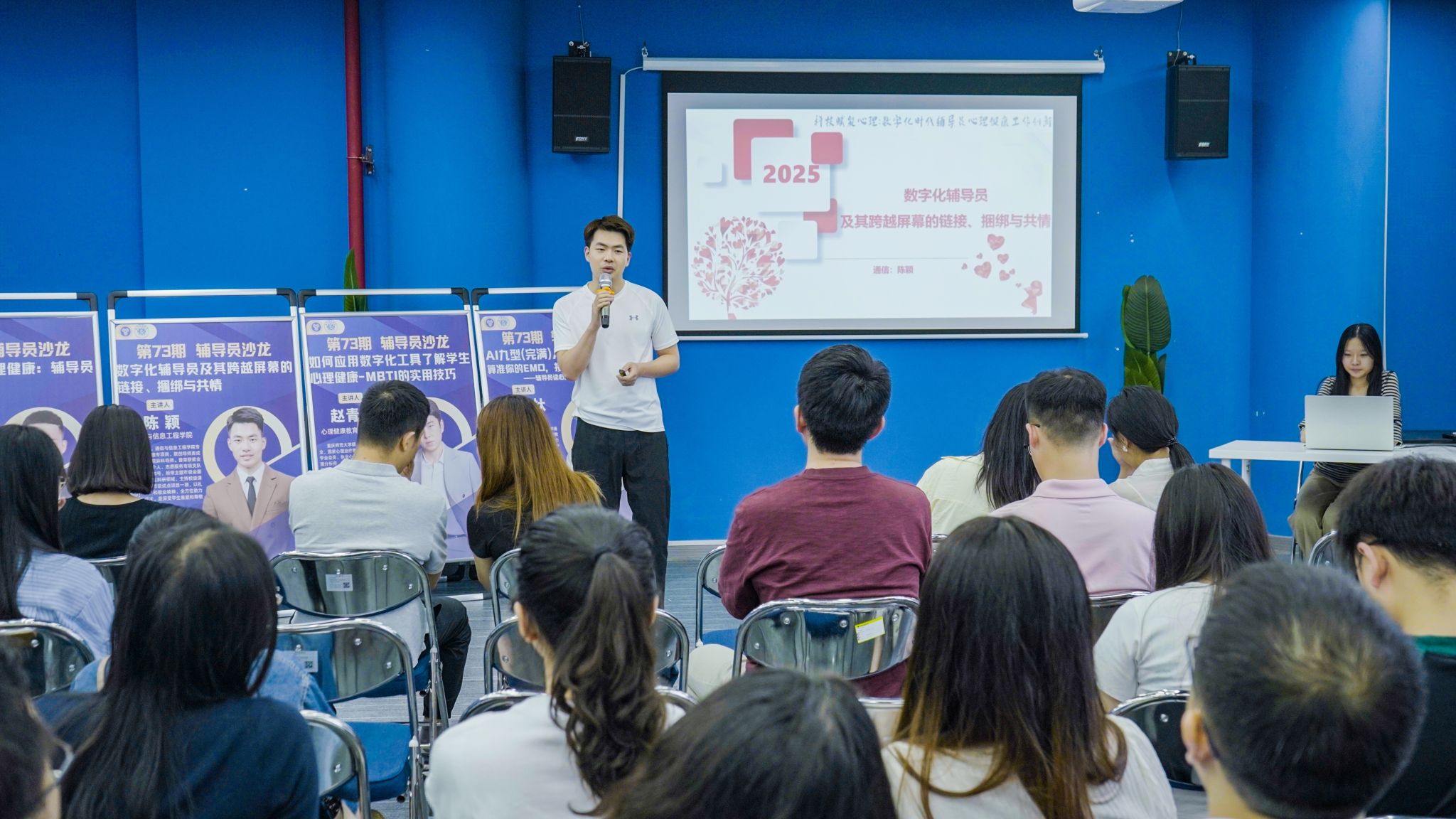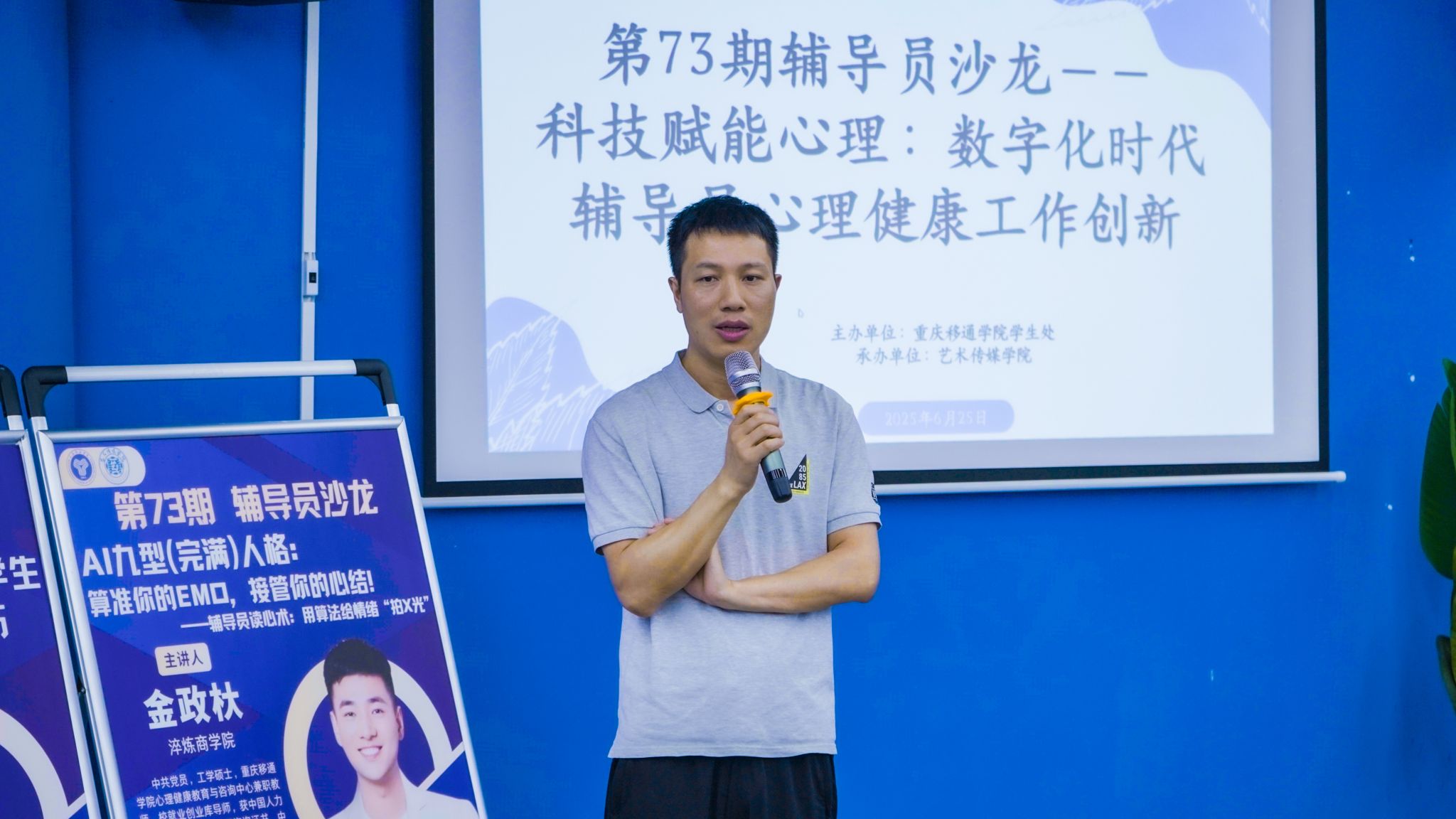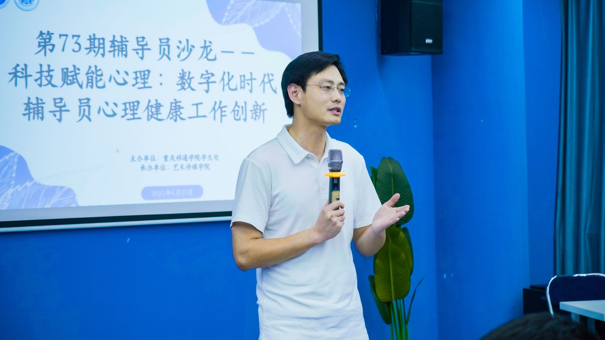 为借助科技赋能心理健康教育工作,提升辅导员运用数字化工具开展心理育人的能力。2025年6月25日,重庆移通学院第73期辅导员沙龙在天空书院揽江厅举行。活动由学生处主办、艺术传媒学院承办,学校党委副书记、常务副校长周伟,学生处处长陈帅,各学院学工副院长及全体辅导员共同探讨科技驱动下心理健康工作创新路径。