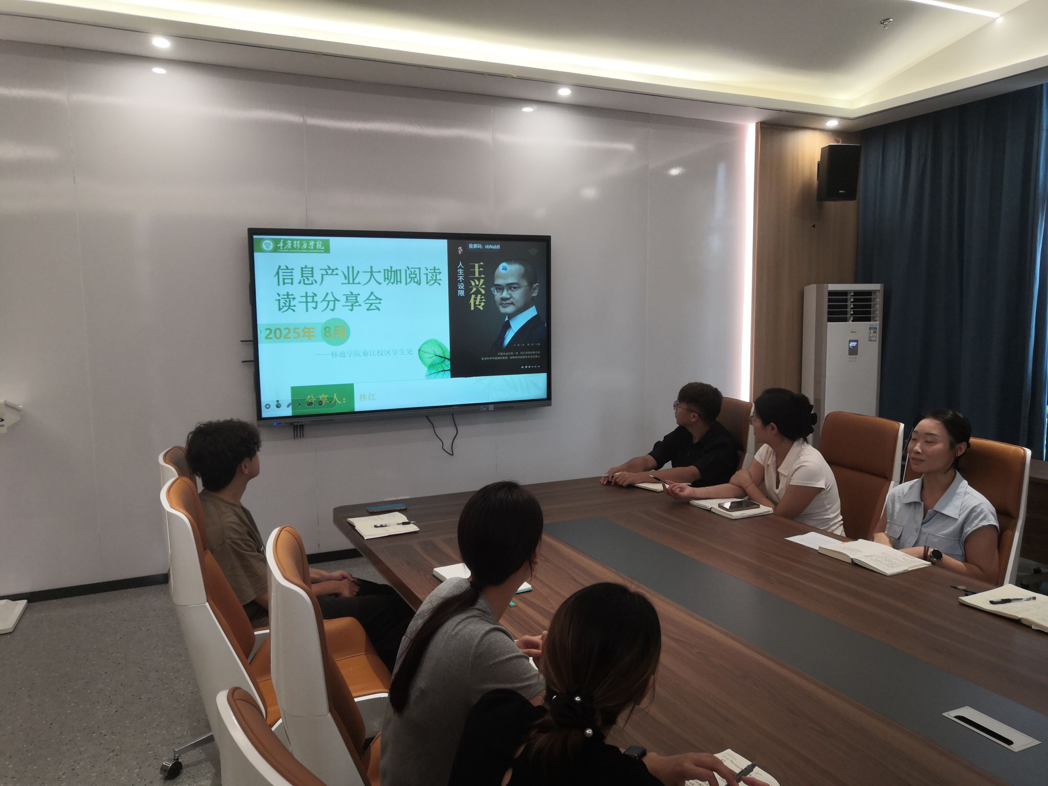 为持续深化“四位一体双院制”育人模式,增强教师团队对互联网创业与企业管理的前沿认知,2025年8月23日上午,学生处于明善图书馆207会议室开展暑期(7—8月)信息产业大咖传记阅读分享会。暑期大咖阅读以各自阅读,集中分享的模式进行。8月分享由林红老师领读,学生处全体教师围绕《王兴传》展开深入研讨,共同学习美团从创业团队到生活服务电商巨头的战略演进与管理智慧。