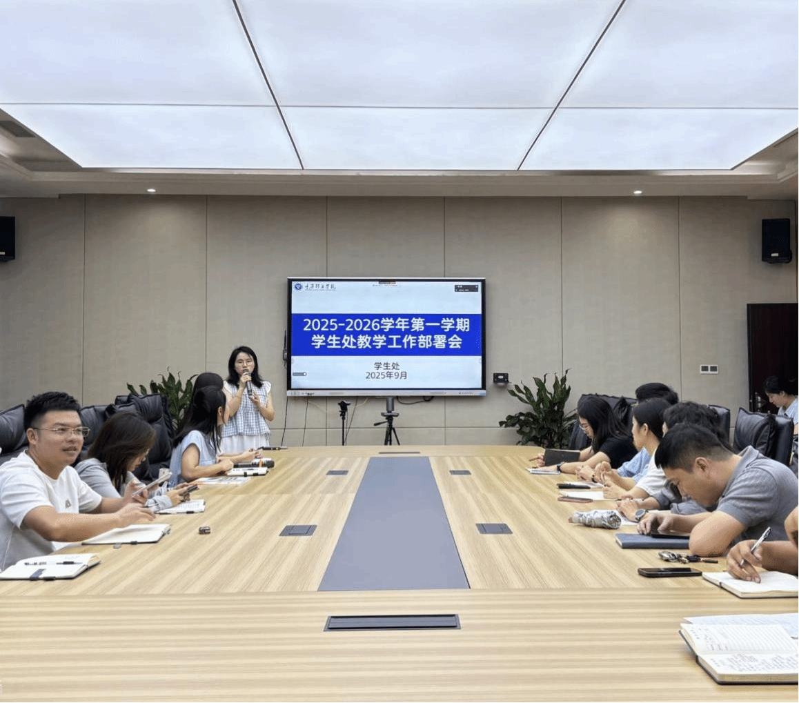 2025年9月2日,新学期学生处教学工作部署会于瀛山图书馆第三会议室召开,统筹推进军事课与安全教育课教学,双校区授课教师线上线下参会。