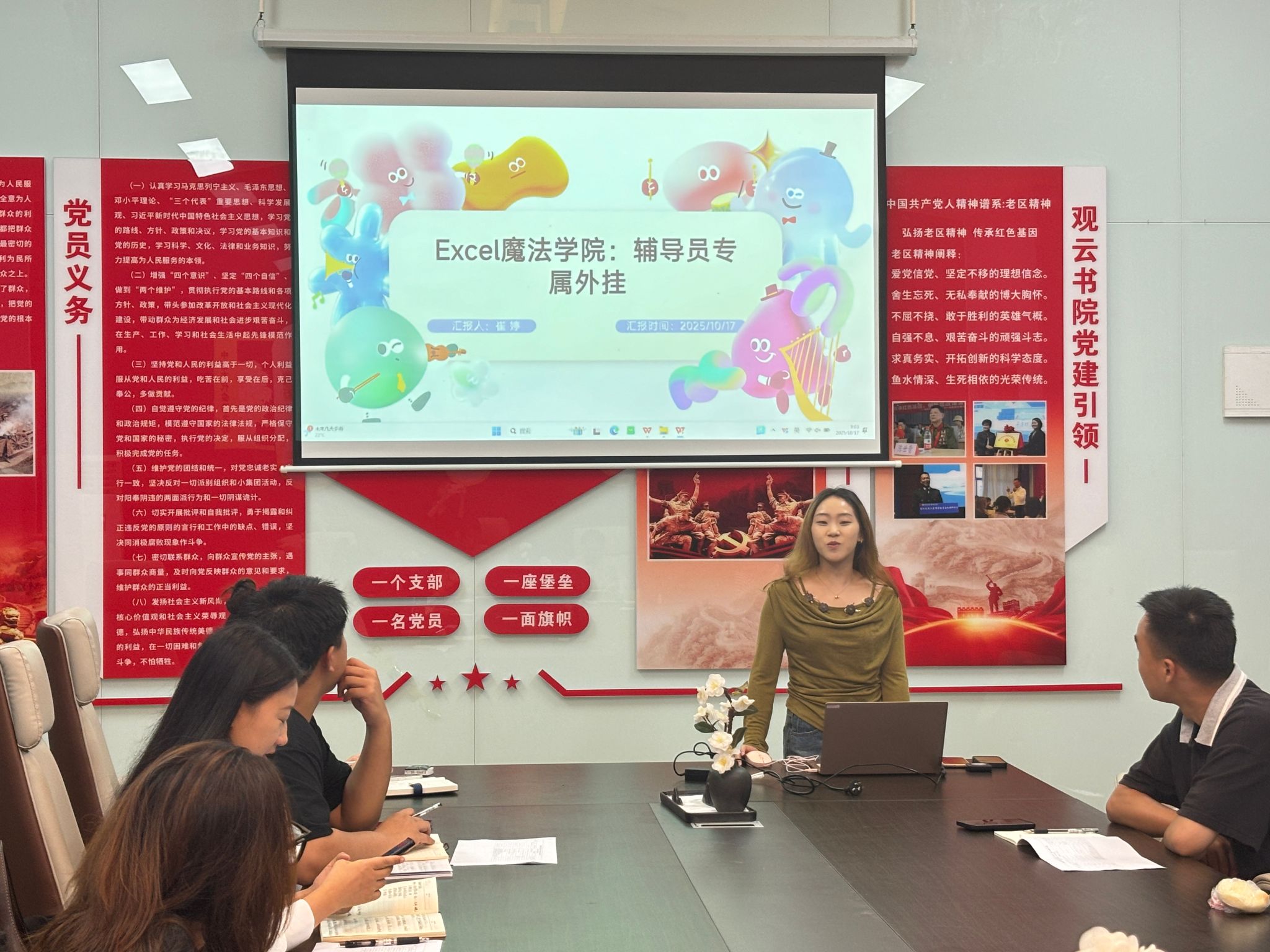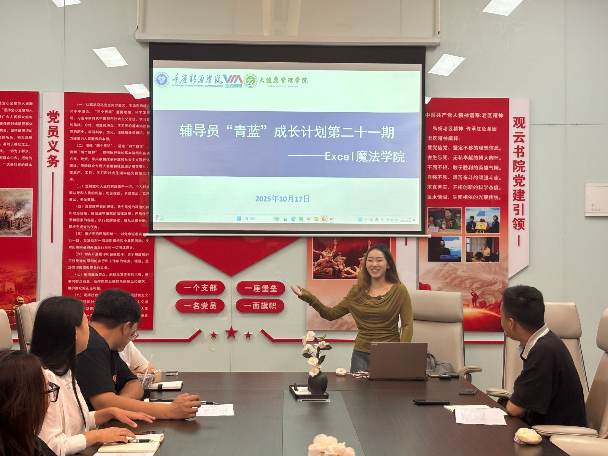 10月17日,大健康管理学院辅导员“青蓝”成长计划第21期在观云书院小雪会议室举行。活动以“Excel魔法学院,辅导员专属外挂”为主题,由学院辅导员崔婷主讲,旨在提升辅导员队伍办公自动化水平与工作效率。