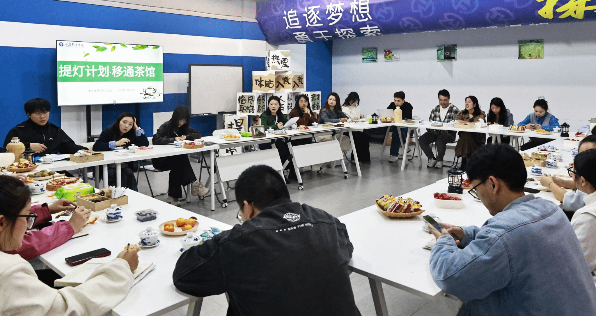 10月28日下午,学生处在天空书院青空朋辈畅谈室举办了第八期提灯计划“移通茶馆·请你来摆龙门阵”活动。本次活动由学生科副科长孙怡老师主持,各学院辅导员代表参加,共同分享外出培训的感悟与经验。