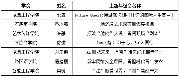 主题年级会是我校大学生思想政治教育的重要环节,是我校完满教育开展的重要形式。为表彰优秀,树立榜样,进一步提高我校主题年级会开展的质量。根据《重庆移通学院主题年级会实施方案》的文件精神,通过辅导员自主申报、学生评审小组现场观摩、教师评审小组综合评分三个环节,最终评选出郭淼等7位辅导员的主题年级会为2025年3月优秀主题年级会。具体名单如下: