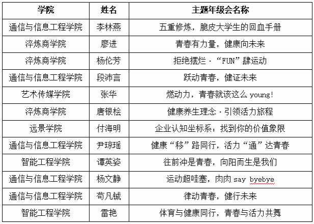 主题年级会是我校大学生思想政治教育的重要环节,是我校完满教育开展的重要形式。为表彰优秀,树立榜样,进一步提高我校主题年级会开展的质量。根据《重庆移通学院主题年级会实施方案》的文件精神,通过辅导员自主申报、学生评审小组现场观摩、教师评审小组综合评分三个环节,最终评选出李林燕等12位辅导员的主题年级会为2025年4月优秀主题年级会。具体名单如下:
