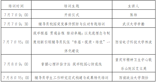 1.各学院要高度重视本次辅导员职业能力提升专题培训,增强组织管理,安排辅导员专门负责,配合学校高质量完成培训工作;