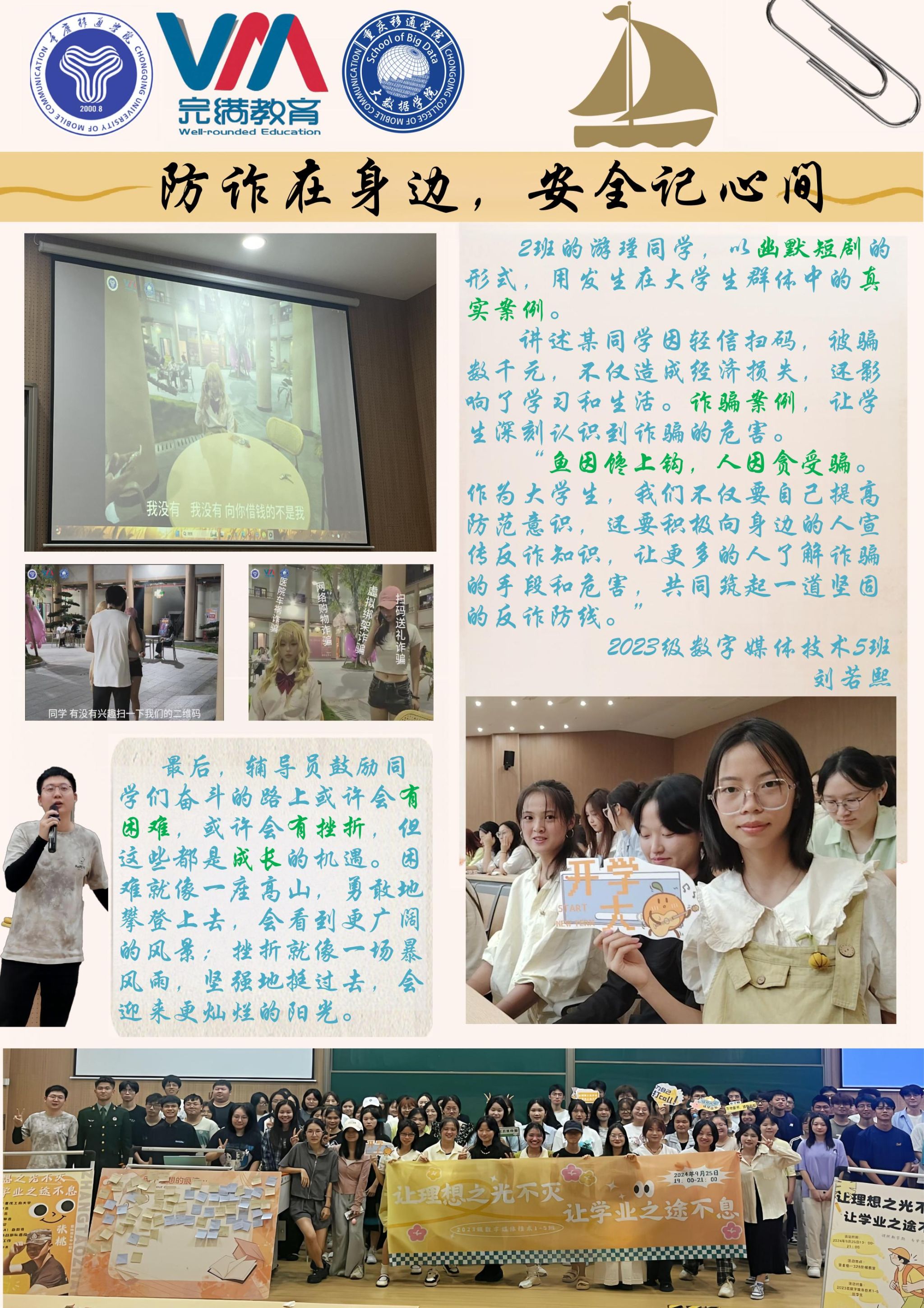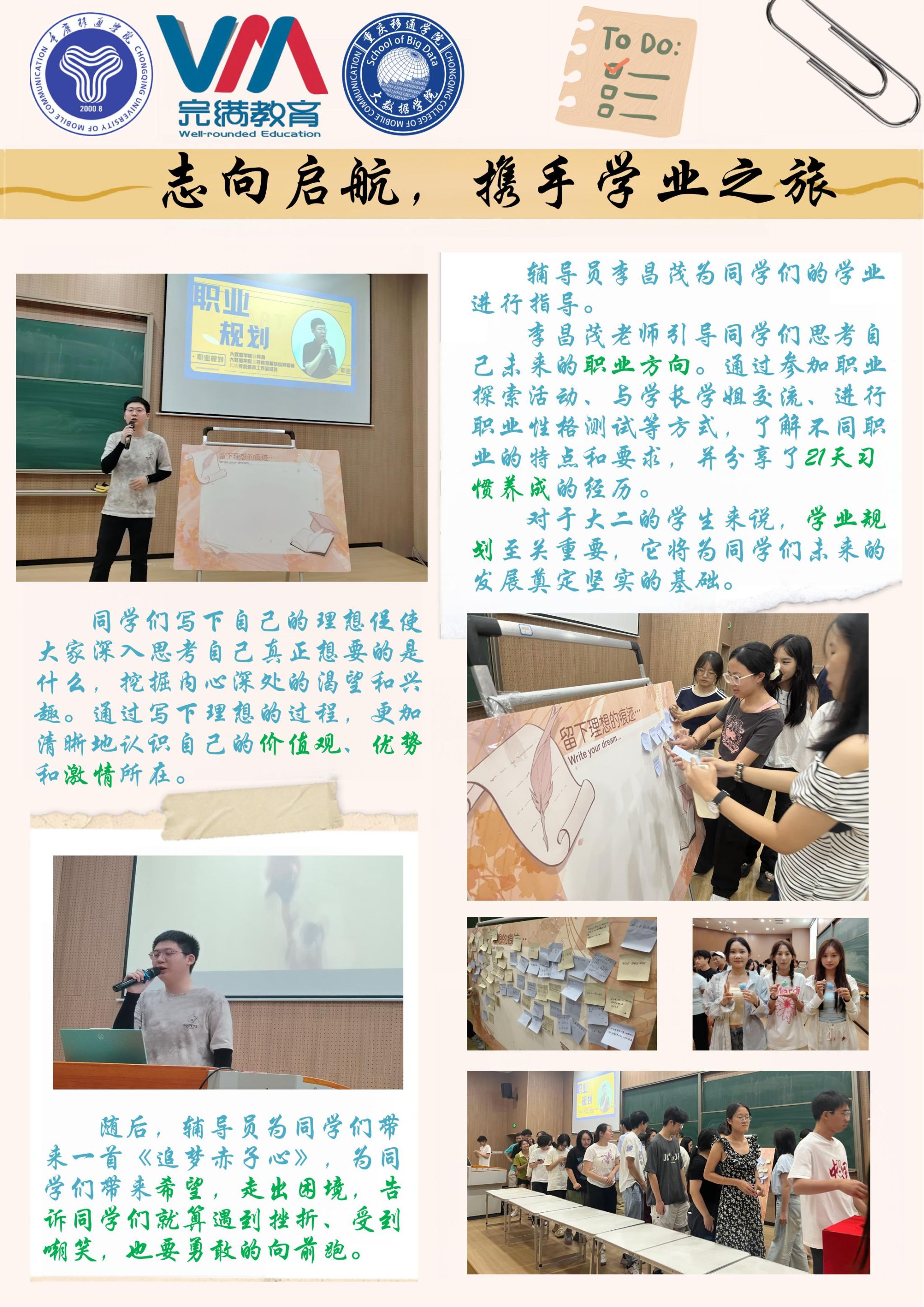 主题年级会是我校大学生思想政治教育的重要环节,是我校完满教育开展的重要形式,它将贯穿学生整个大学生活。通过不同形式的主题年级会,不仅帮助学生形成良好的学习认知,了解学校的规章制度,培养安全法治意识,更重要的是让学生在四年的大学生活中,养成良好的学习习惯与行为习惯,促进学生的全面成长。