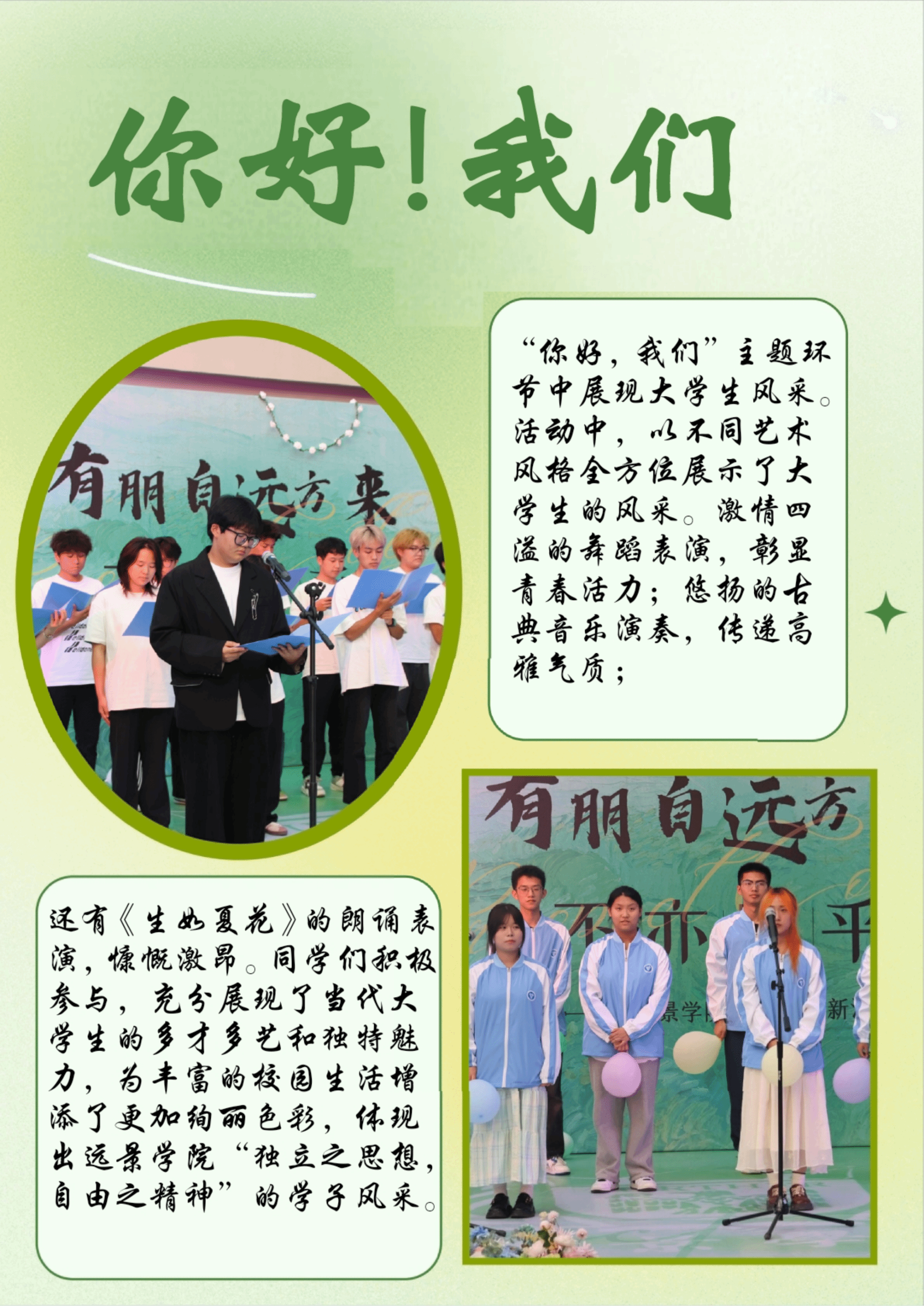 经验分享:以“艺术+酒会”形式,帮助新生打破社交隔阂,营造的轻松氛围和互动环节能降低社交压力,促使学生自然建立联系,形成首批朋友圈。以正装出席、礼仪互动模拟真实社交场景,让新生在潜移默化中学习沟通技巧,为未来的学术和职场社交奠定基础。