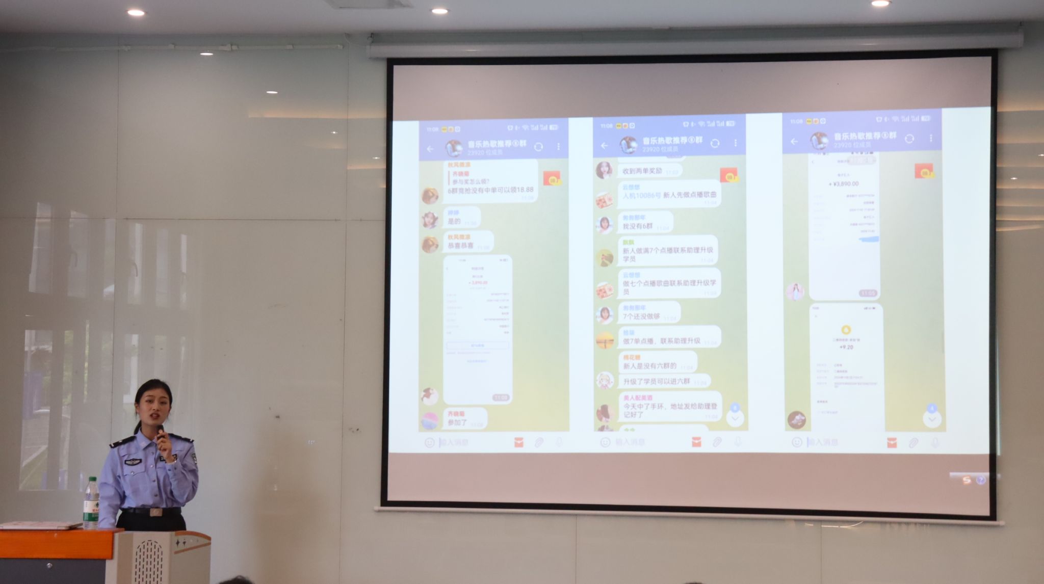 余警官着重介绍了刷单返利、虚假购物服务、同城交友裸聊、网络游戏产品虚假交易等高发诈骗类型,并结合实际案例深入剖析了诈骗分子的作案手法和心理策略。