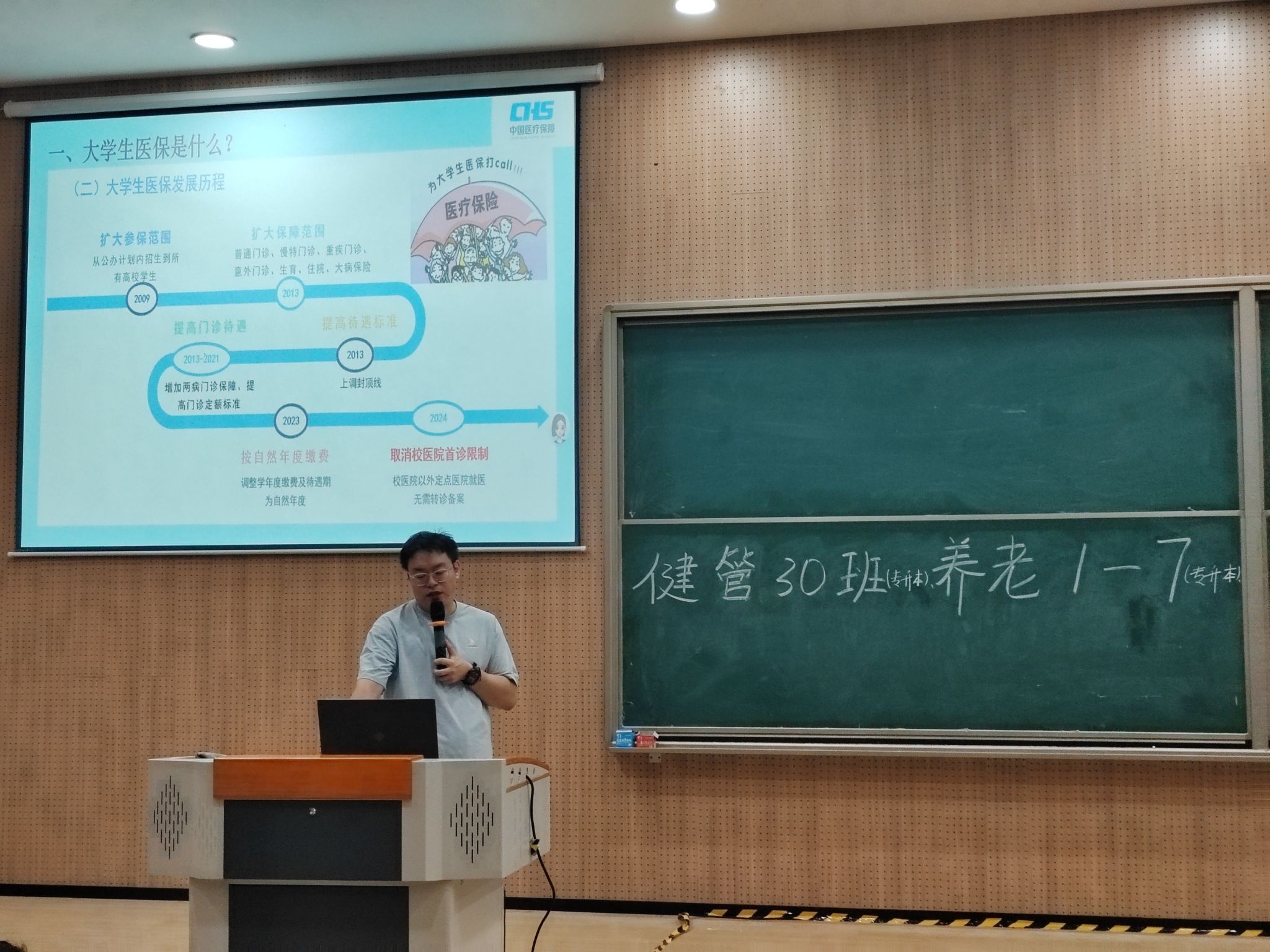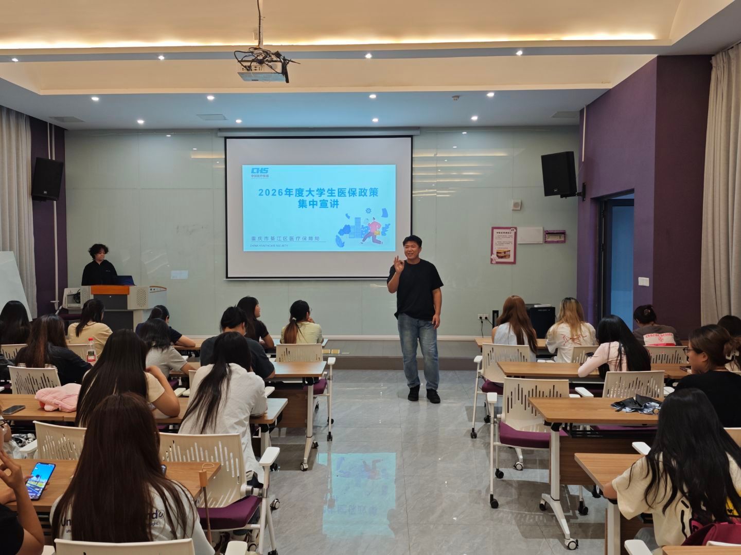 为切实保障学生医疗权益,帮助学院不同年级、不同专业学子明晰大学生医保政策,筑牢健康防线,9月26日至9月30日,大健康管理学院辅导员团队针对全院各年级学生,集中开展多场次大学生医保政策专题宣讲会。